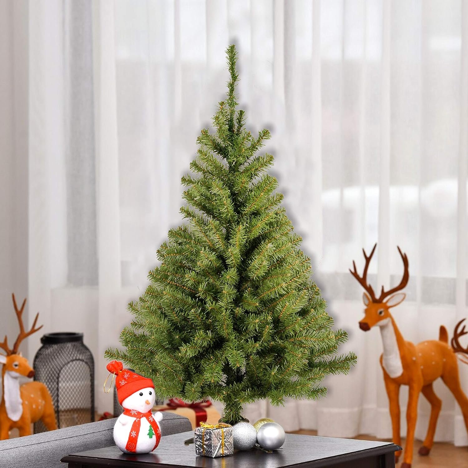 • Este árbol de Navidad verde artificial de abeto Kincaid mide 3 pies de alto con un diámetro de base de 22 pulgadas. Con cientos de puntas de ramas hechas individualmente para crear ramas de cuerpo completo, este árbol está diseñado para verse y sentirse realistas.