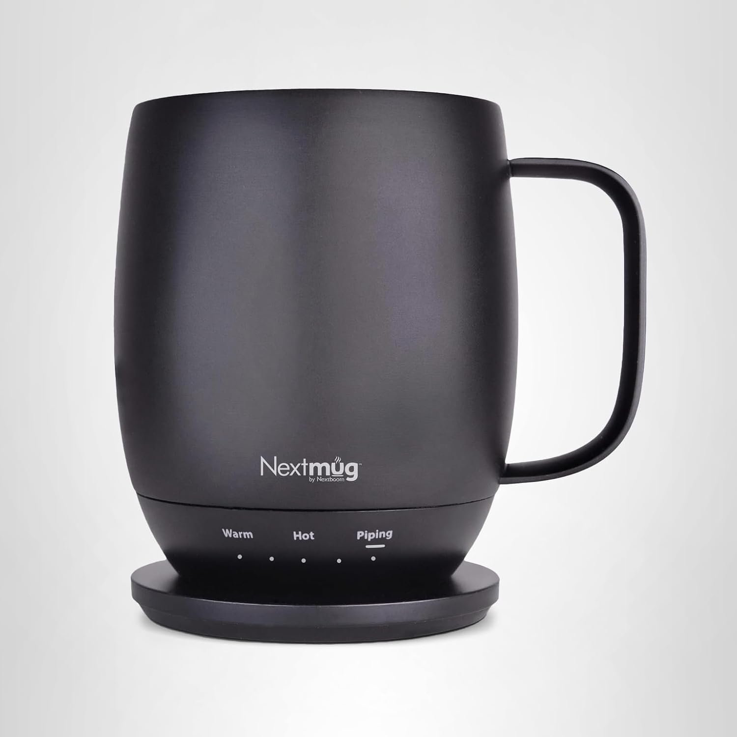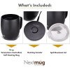 El posavasos de acoplamiento carga la batería de iones de litio en el Nextmug para mantener las bebidas a la temperatura ideal durante horas. La taza también se puede dejar en el posavasos para mantener las bebidas a tu temperatura preferida indefinidamente.