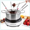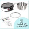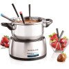 Nostalgia – Olla de fondue eléctrica de acero inoxidable para 6 tazas con control de temperatura, 6 tenedores codificados por color y olla extraíble, para chocolate, dulces, queso, salsas y más