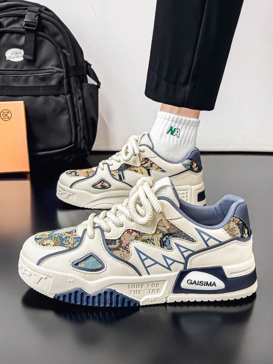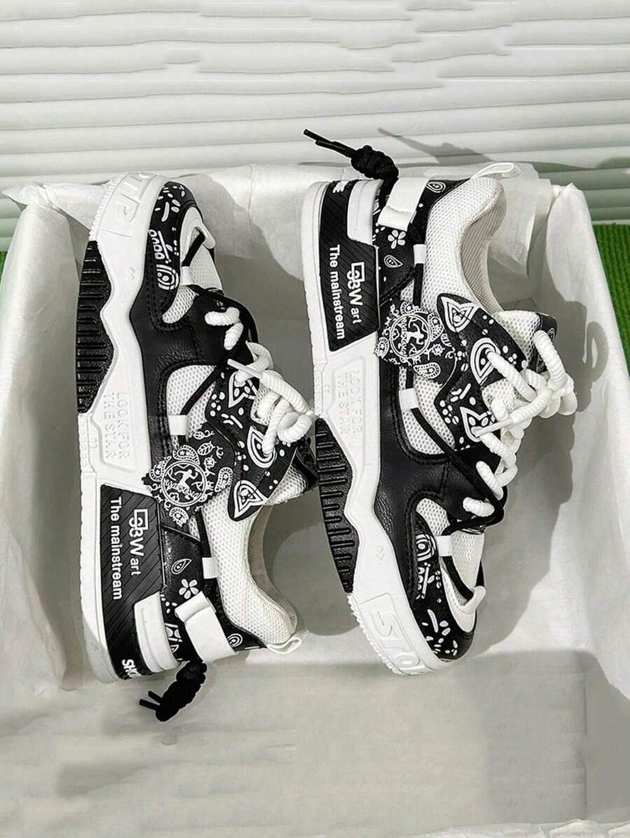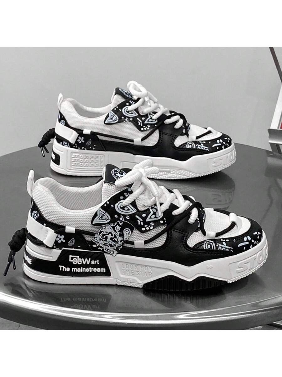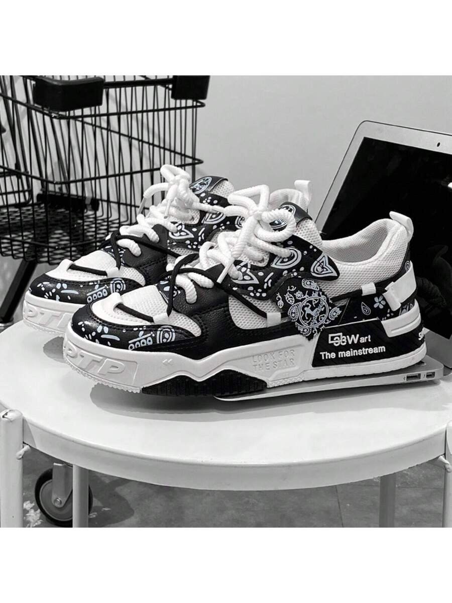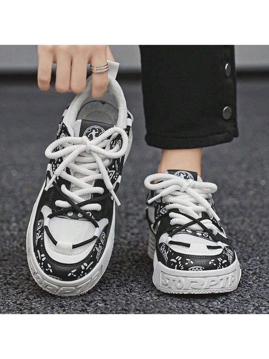 Nuevos zapatos casuales de verano transpirables vulcanizados para hombres, tenis con suela gruesa antideslizante de patrón de graffiti aleatorio de moda