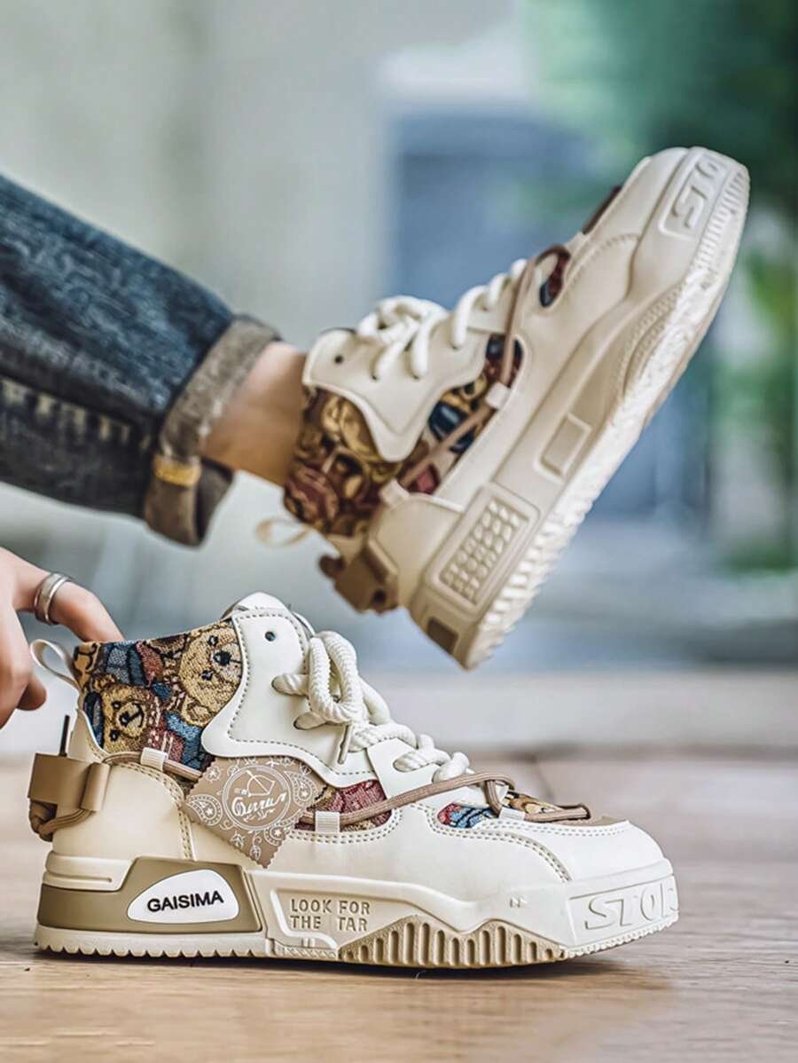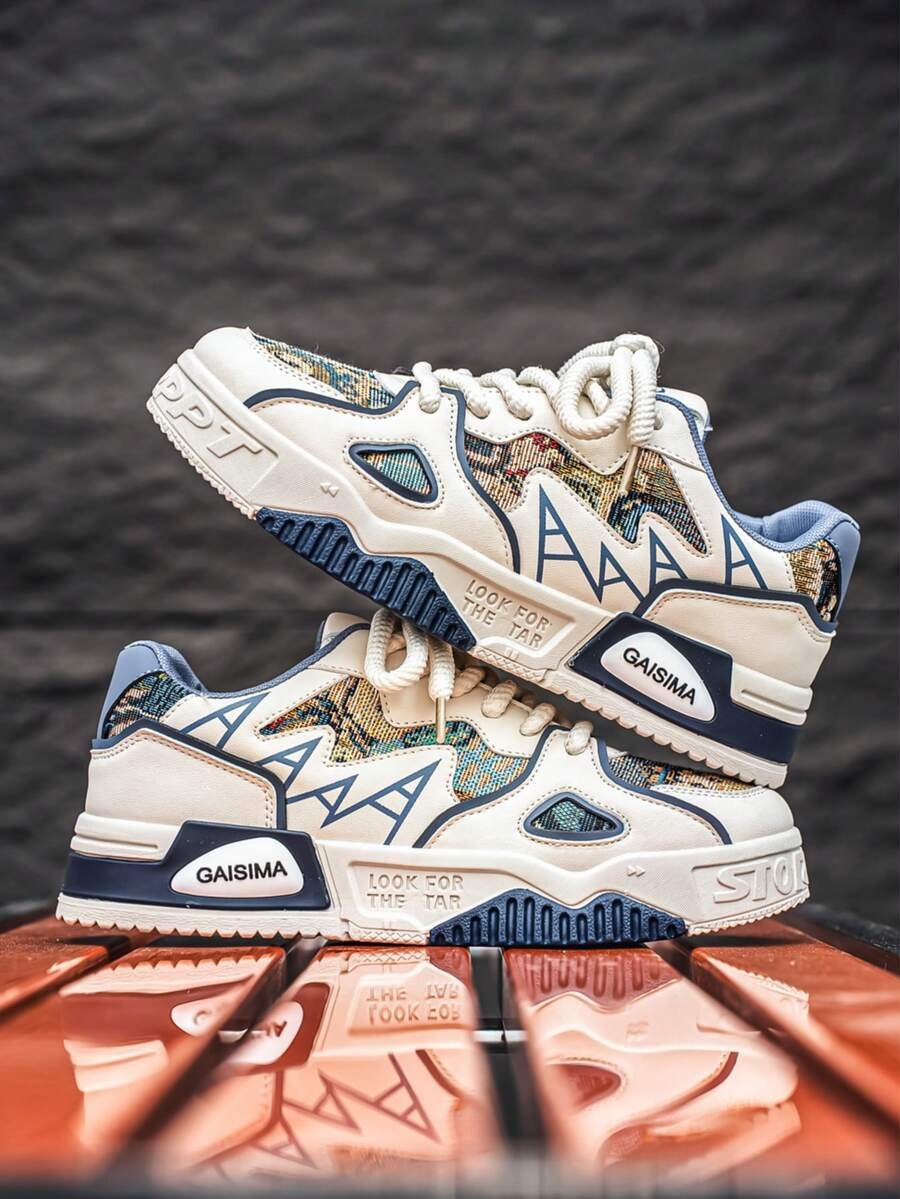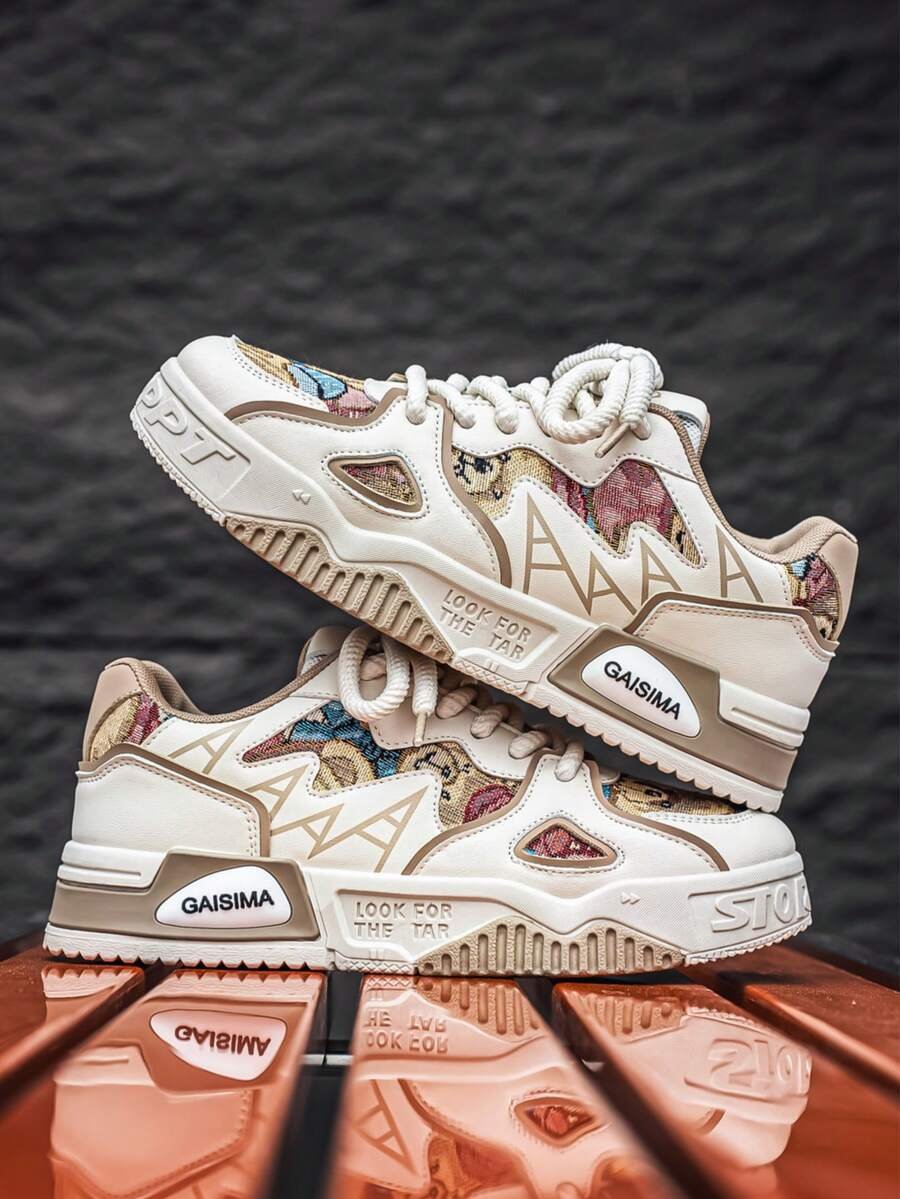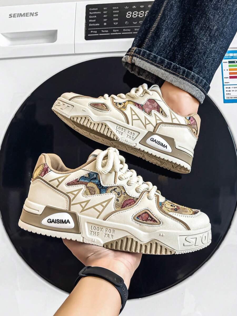 Nuevos zapatos casuales de verano transpirables vulcanizados para hombres, tenis con suela gruesa antideslizante de patrón de graffiti aleatorio de moda