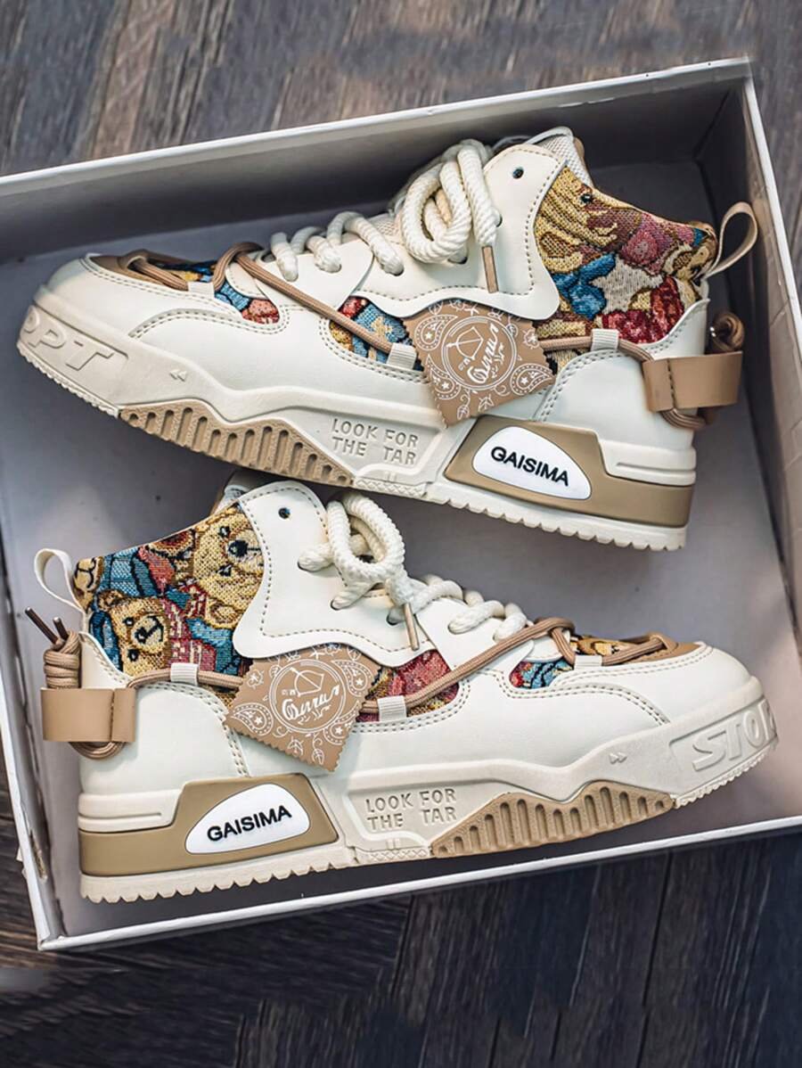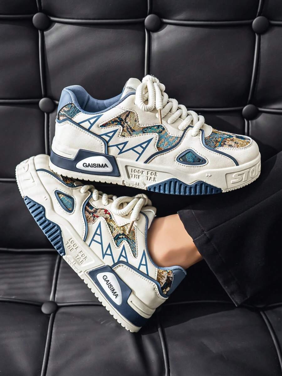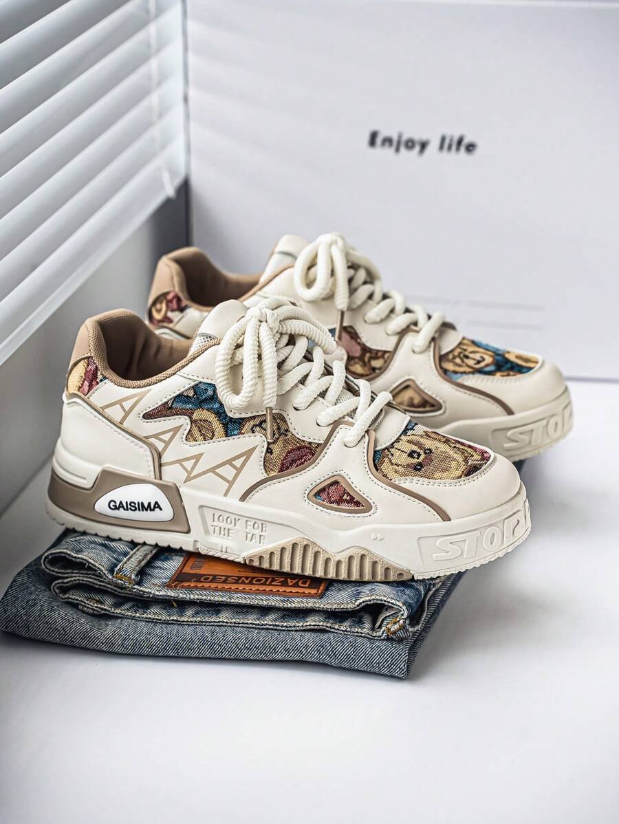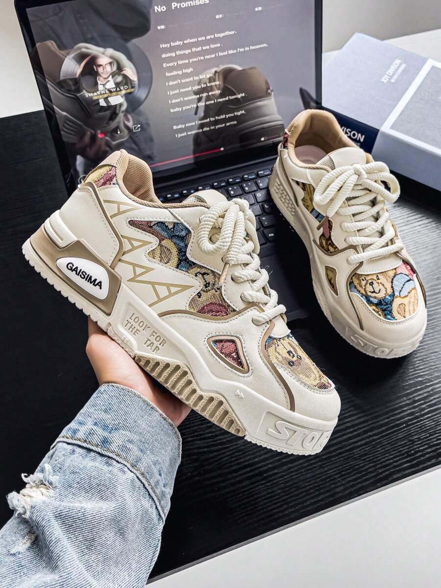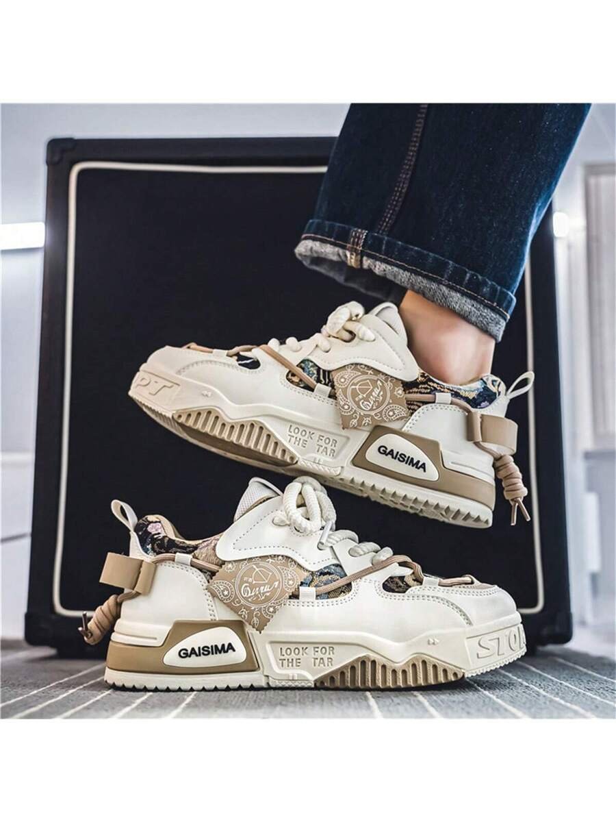 Nuevos zapatos casuales de verano transpirables vulcanizados para hombres, tenis con suela gruesa antideslizante de patrón de graffiti aleatorio de moda