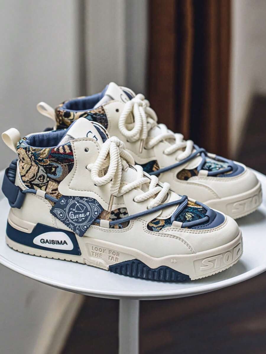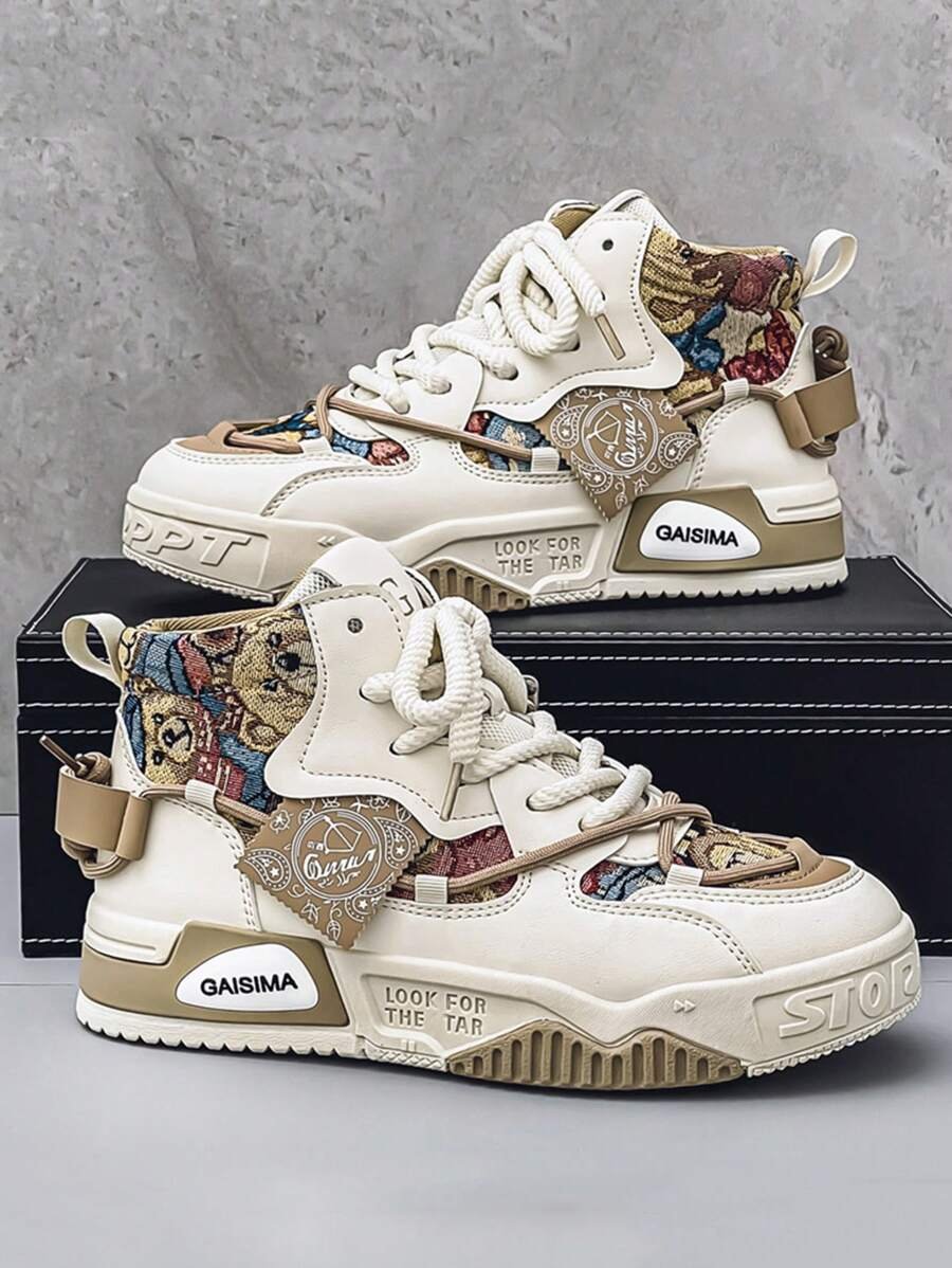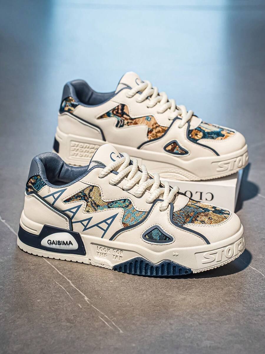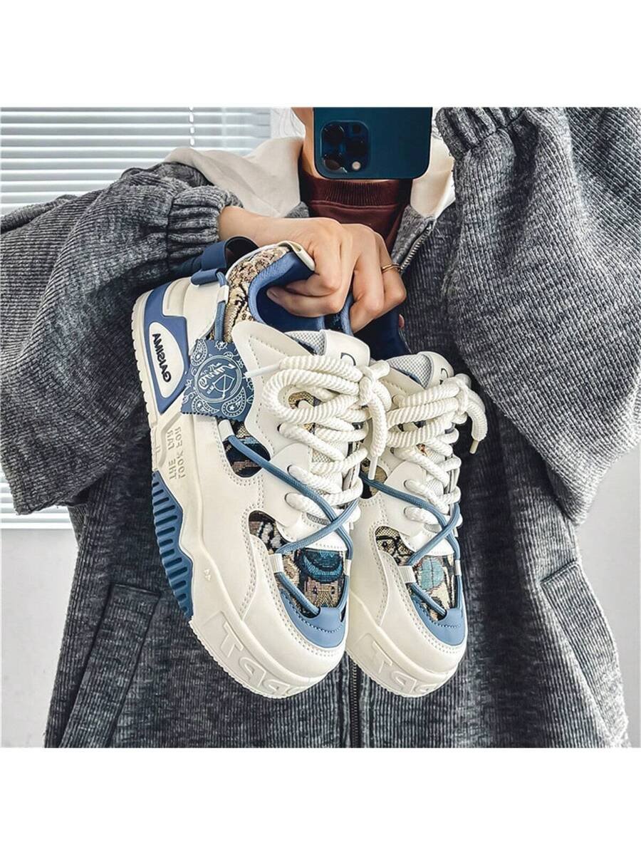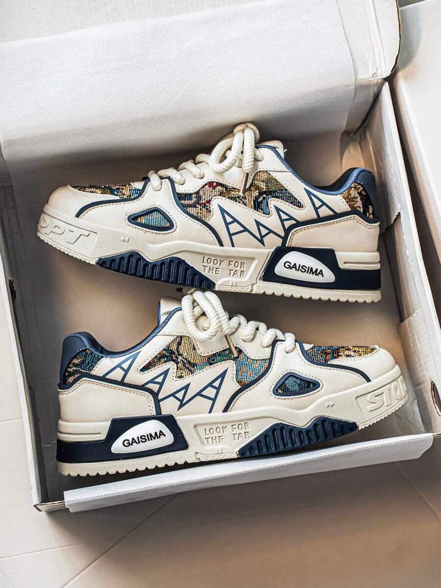 Nuevos zapatos casuales de verano transpirables vulcanizados para hombres, tenis con suela gruesa antideslizante de patrón de graffiti aleatorio de moda