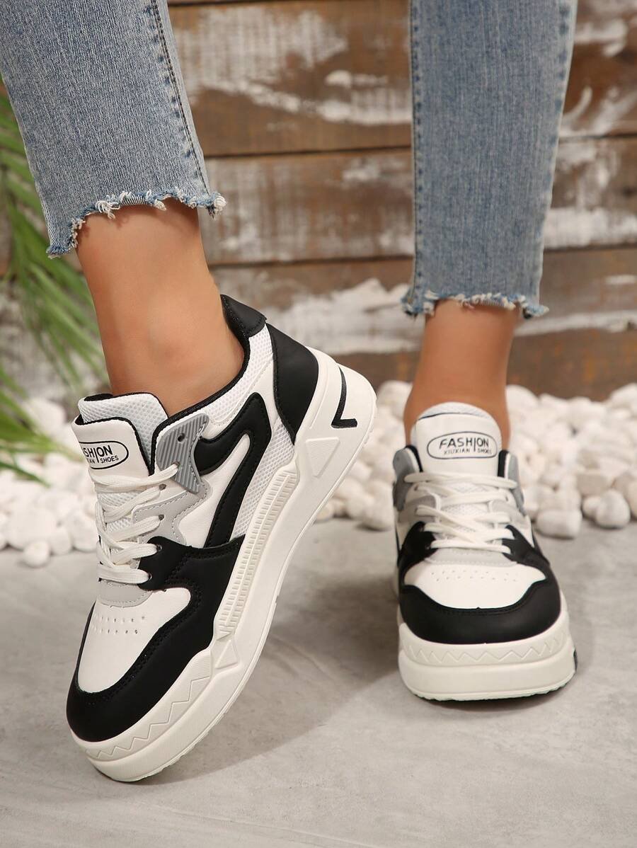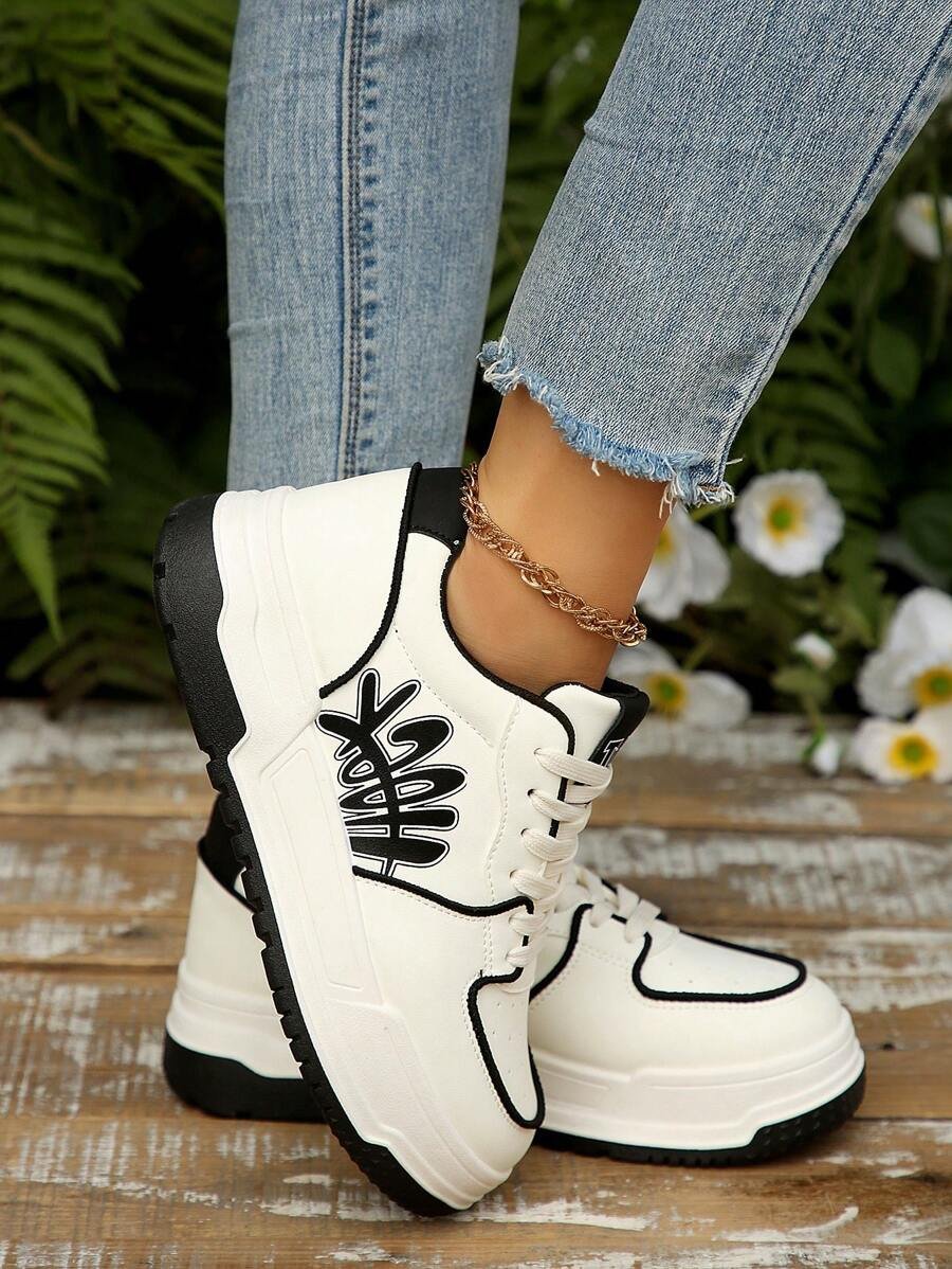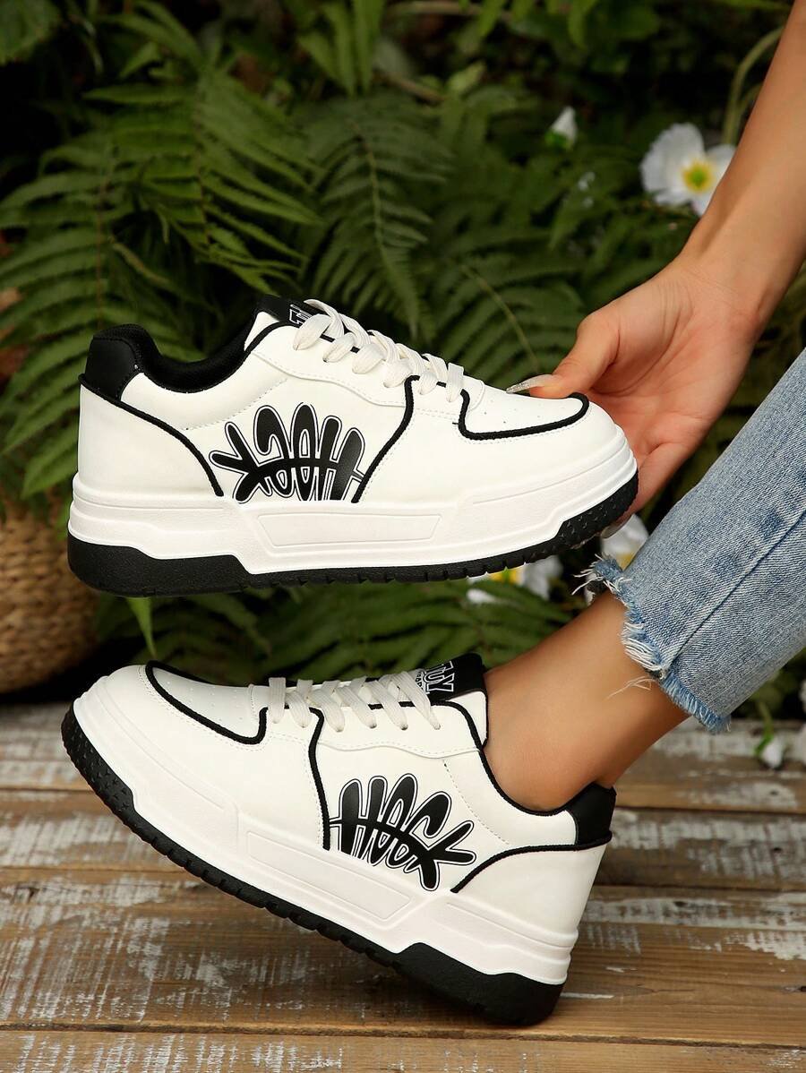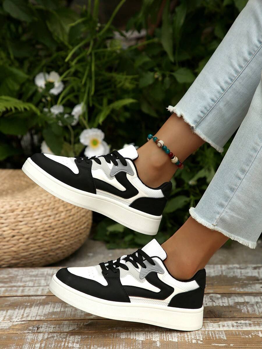 Nuevos zapatos de skate para estudiantes mujer primavera 2025 en blanco y negro, zapatillas de moda versátiles y respirables, zapatos casuales estilo Ins