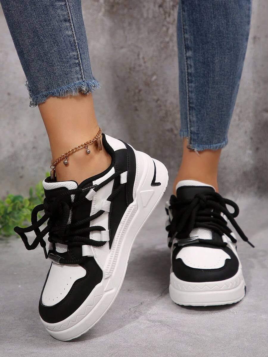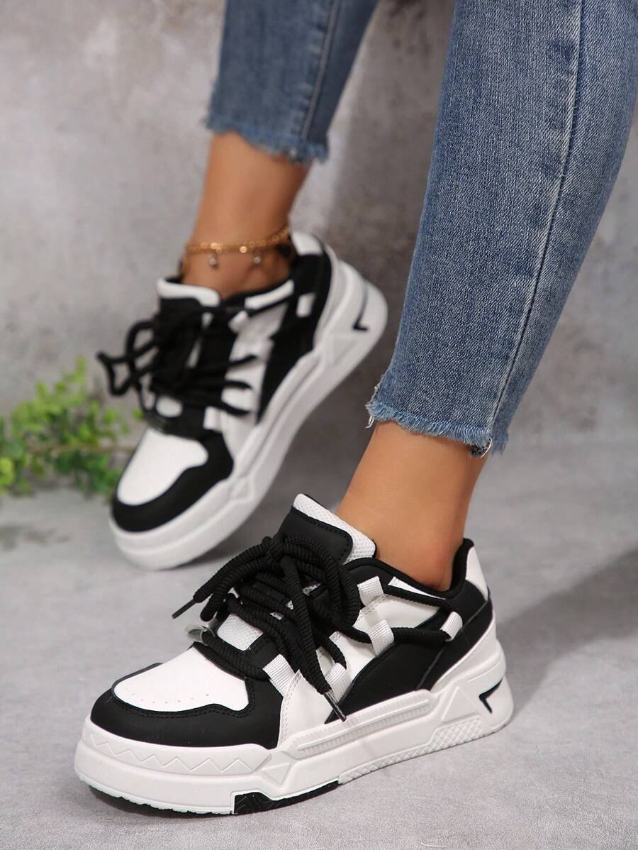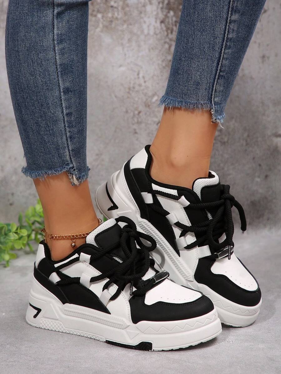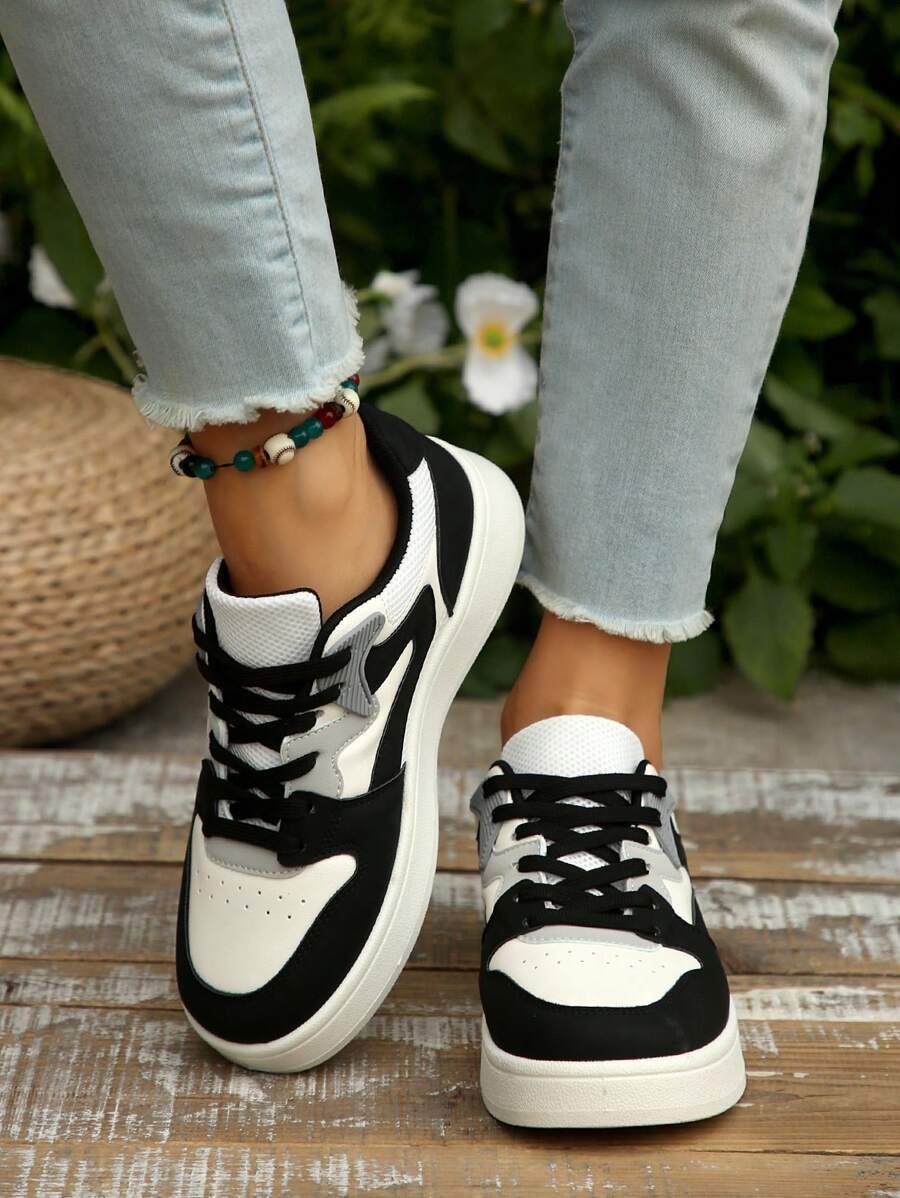 Nuevos zapatos de skate para estudiantes mujer primavera 2025 en blanco y negro, zapatillas de moda versátiles y respirables, zapatos casuales estilo Ins