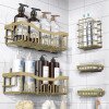 Organizador adhesivo para ducha, paquete de 5 organizadores de baño de acero inoxidable con gran capacidad, estantes sin perforaciones para almacenamiento de baño y decoración del hogar