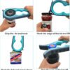 Juego de abridor de tarros multifunción y abridor de botellas, adecuado para varias tapas de frascos, cubiertas de botellas de pepinillos y tapas de refrescos y refrescos, latas de frijoles, para manos débiles, personas mayores con artritis, baja resistencia.