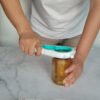 El último diseño te permite abrir las tapas de los frascos de dos maneras: 1. Saque la cubierta rompiendo la estanqueidad. 2. Agarre las tapas y retuerza