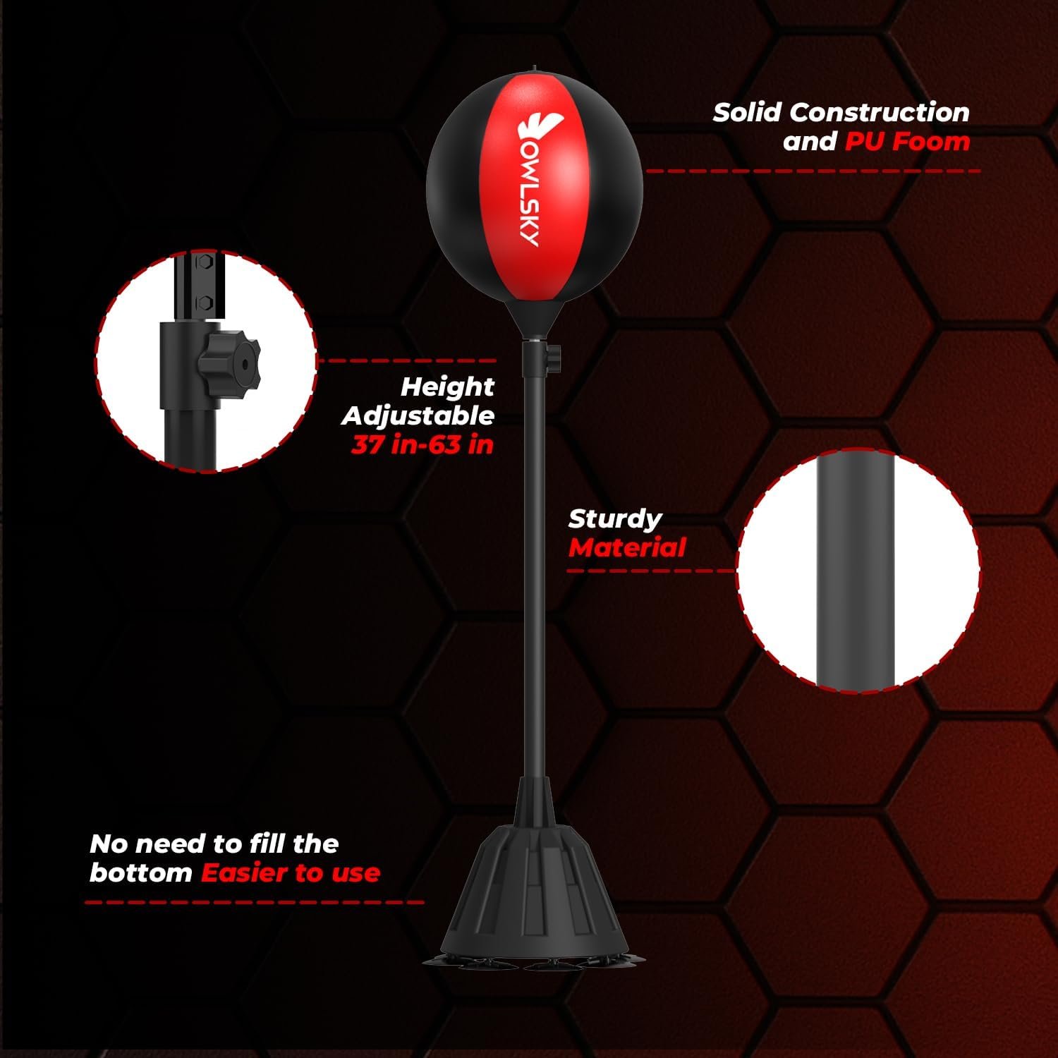 Owlsky Punching Bag with Stand, Boxing Bag for Adults – Height Adjustable – Speed Bag for Training, Boxing Equipment, Stress Relief & Fitness