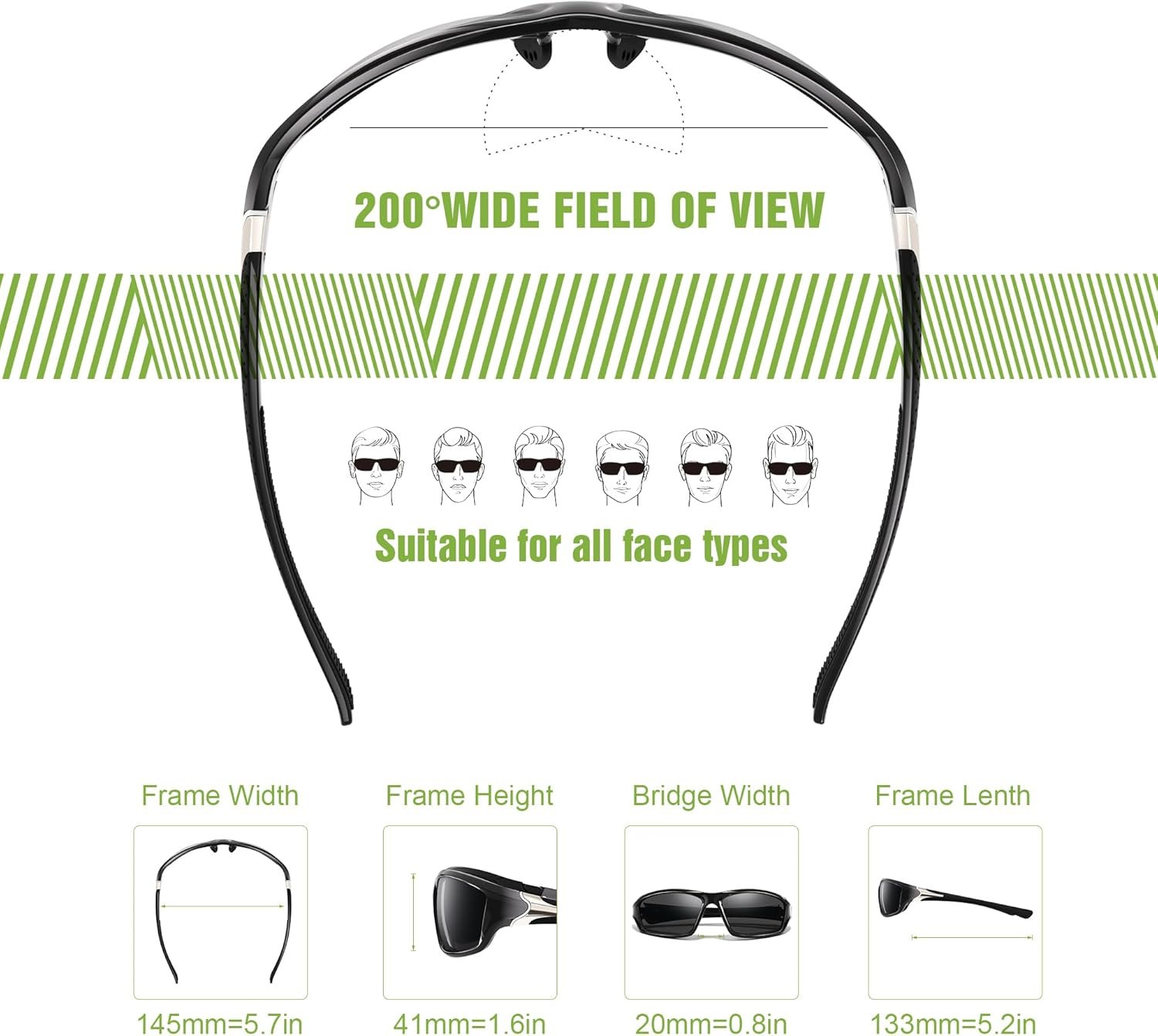 - Exquisito empaque y consejos de cuidado: los lentes de sol polarizados para hombre con protección ultravioleta vienen con 3 pares de lentes de sol polarizados deportivos para hombre, 1 estuche para lentes, 1 paño de limpieza, 1 bolsa para lentes, 3 correas para lentes y 1 tarjeta de prueba de polarización, lo que los convierte en un regalo ideal para amigos y familiares. Consejos especiales: para proteger la integridad del revestimiento de los lentes de sol para ciclismo, evita exponerlos a temperaturas extremadamente altas, como el contacto directo con agua caliente.