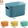 Los coloridos contenedores de almacenamiento con tapas son perfectos para organizar despensa, estantes, armario en la cocina, cuarto de servicio, baño, armario, aula, un escritorio, es fácil de agarrar cuando quieres almacenar juguetes Lego y jugar con ellos. Capacidad perfecta: 9.85 pulgadas de largo x 6.9 pulgadas de ancho x 5.7 pulgadas de alto. Color: Azul/Amarillo/Verde/Naranja. Cantidad: 2 azules, 2 amarillos, 2 verdes, 2 naranjas. Nota: Comprueba las medidas antes de comprar.