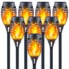 Paquete de 8 luces solares para exteriores con 12 LED: antorchas solares con llama parpadeante para decoración de jardín, iluminación de caminos actualizada, lámpara decorativa impermeable para exteriores, patio, césped, antorchas Tiki.