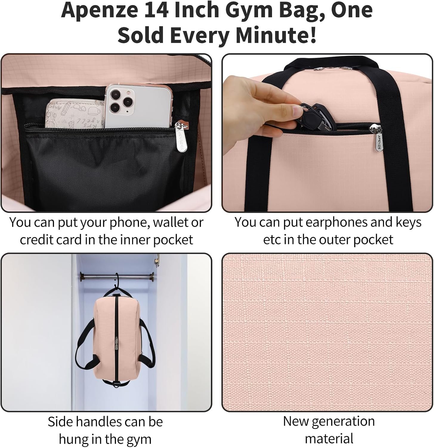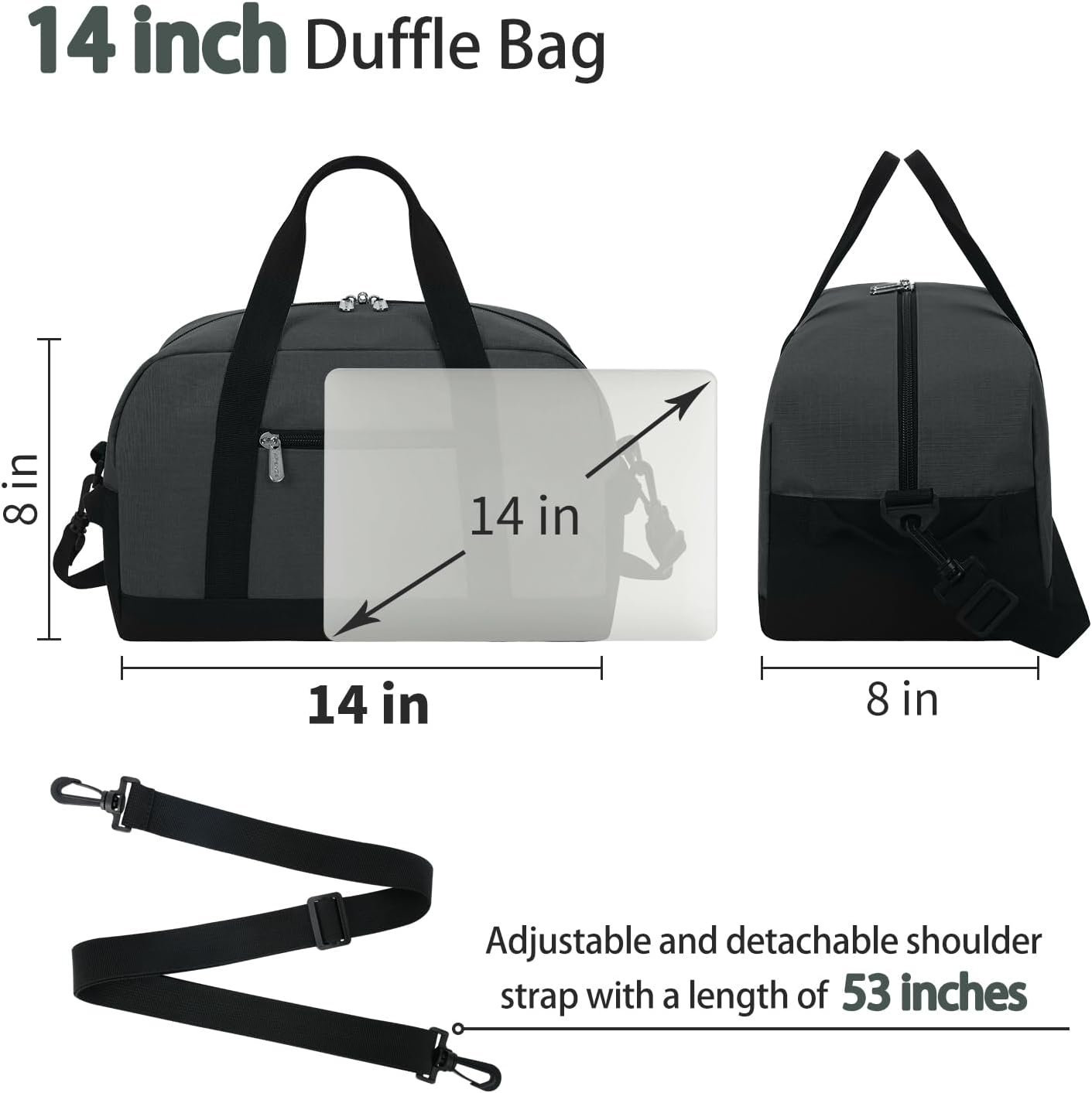 - Bolsa de gimnasio diseñada: esta pequeña bolsa de gimnasio está diseñada para gimnasio. Su tamaño de 14 pulgadas se adapta perfectamente al casillero de gimnasio. Puede contener un par de zapatos, cambiarse de ropa, botella de agua y otros elementos esenciales para el gimnasio.