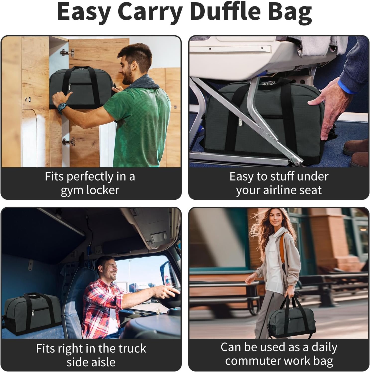 - Tamaño de transporte: esta bolsa de lona es perfecta para guardar artículos personales mientras viajas y se puede llevar en el avión contigo, cabe fácilmente debajo del asiento de United Airlines cuando se llena a su capacidad.