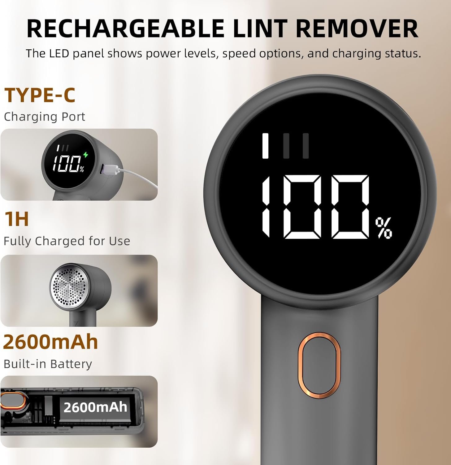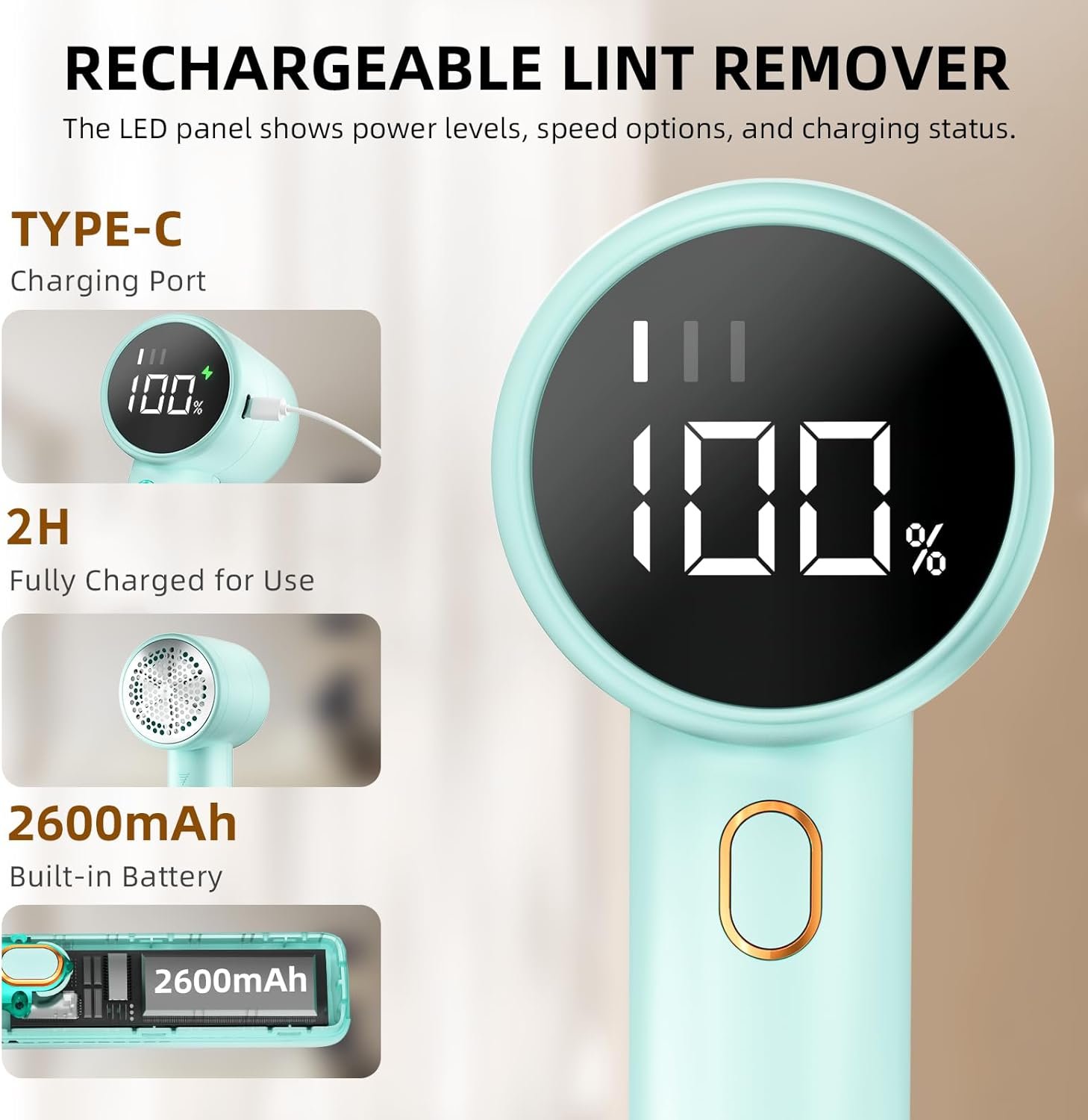 - Pantalla LED digital: mantén el control con nuestra intuitiva pantalla LED digital. Controla fácilmente el nivel de batería y la configuración de velocidad, asegurando que siempre tengas la potencia que necesitas para tu rasuradora de telas; larga duración de trabajo, batería de 2600 mAh, 2 horas de carga rápida, funciona de 3.5 a 4.5 horas