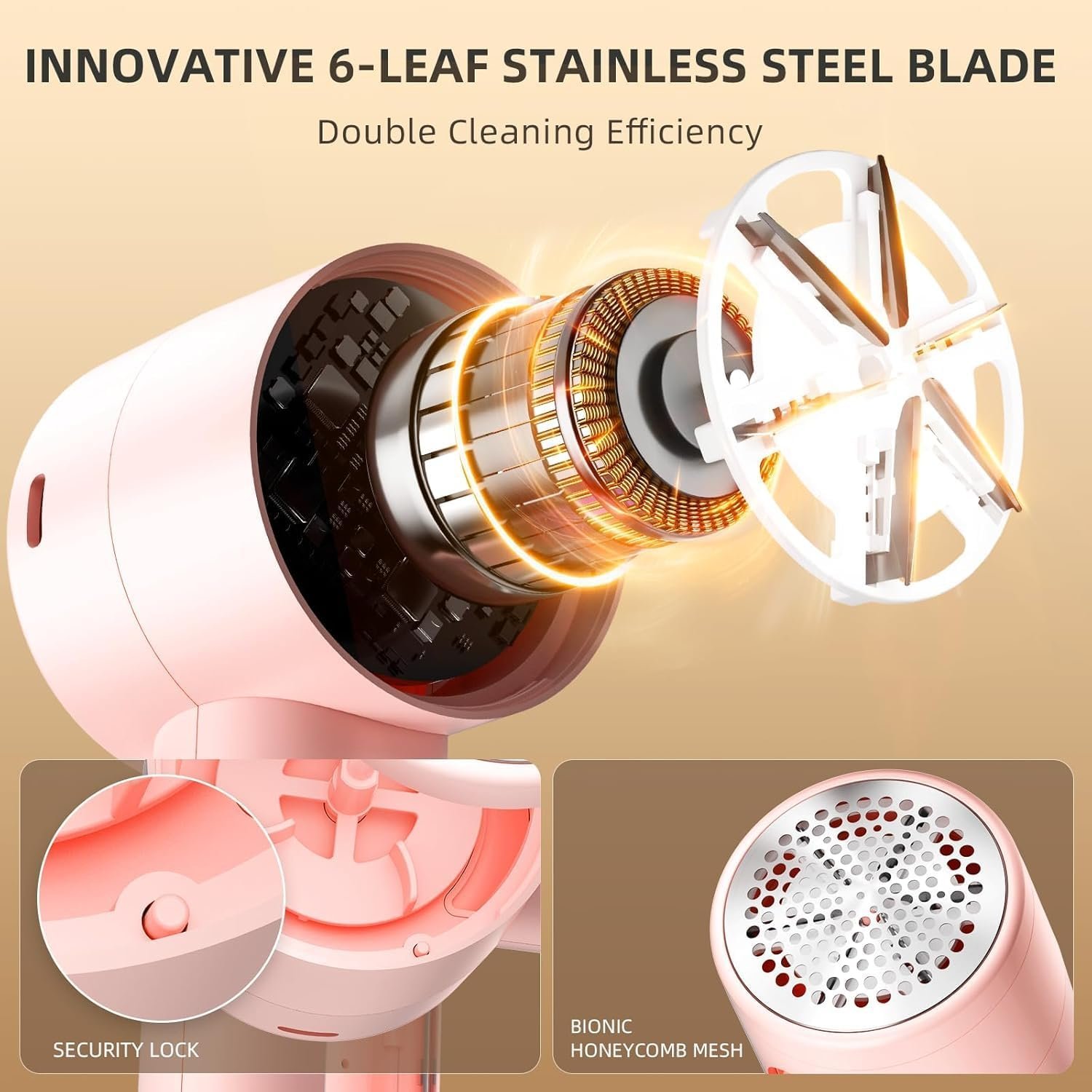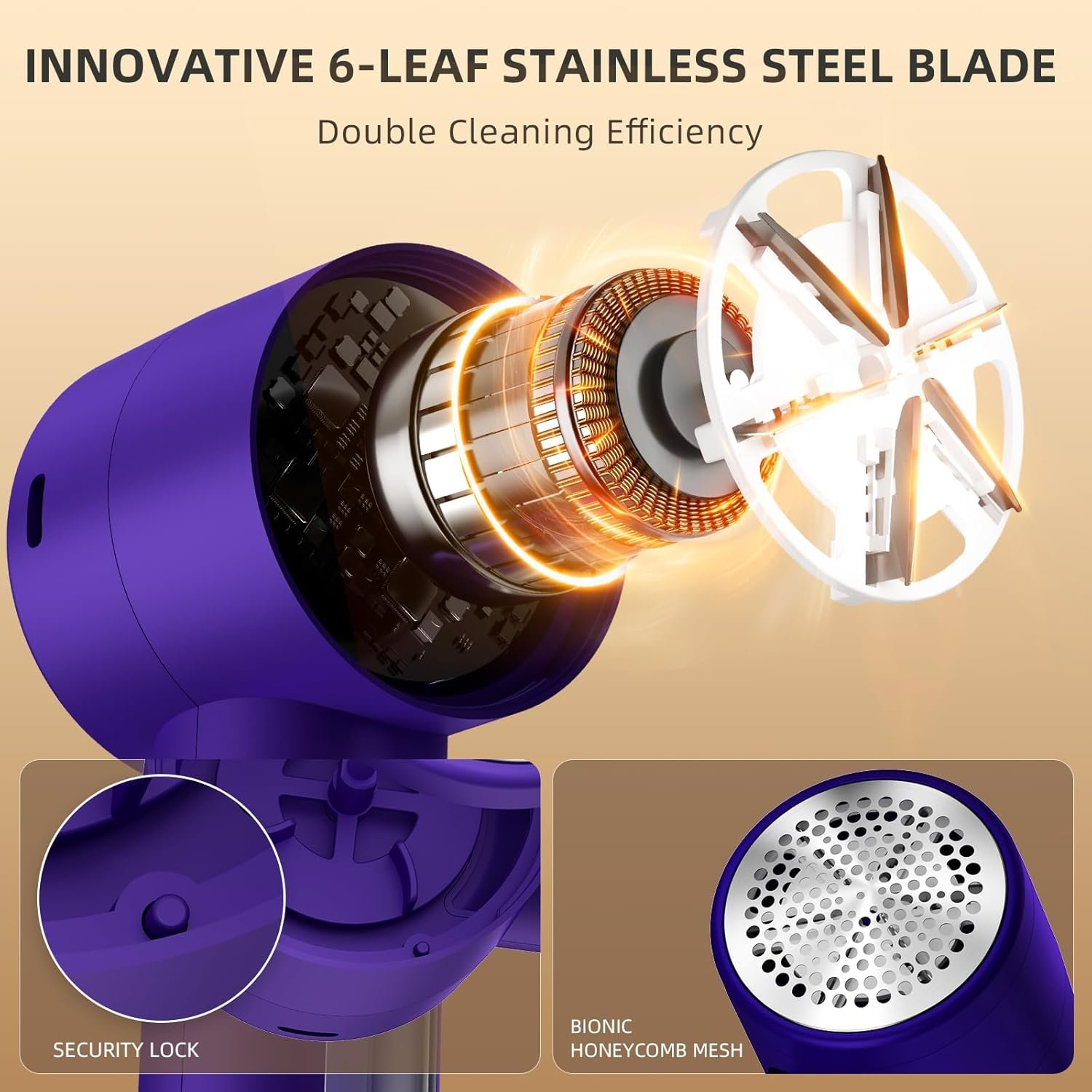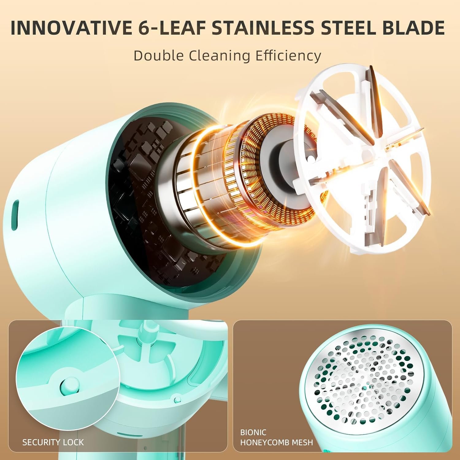 - Protección múltiple: protección de tela, malla de panal biónica que garantiza la seguridad de la tela. Garantía de seguridad: si la rejilla se afloja, el interruptor de seguridad desactivará rápidamente el dispositivo y protegerá tu mano. Seguridad de carga: nuestro removedor de pelusas dejará de cargar automáticamente al alcanzar la carga completa.