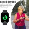 - 【Tu monitor personal de salud diaria de 24 horas】Reloj de fitness para mujeres y hombres, pantalla táctil completa, IP67, impermeable, Bluetooth, smartwatch para teléfonos Android iOS con monitor de presión arterial de frecuencia cardíaca, reloj inteligente Android multifunción con contador de pasos, monitor de sueño, reloj deportivo de fitness, monitoreo de saturación de oxígeno en sangre te permite entender tu condición física en tiempo real para rastrear el progreso del fitness, para saber tu estado de salud a tiempo