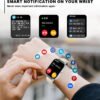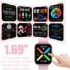 - Reloj de pantalla completa más grande de 1.69 pulgadas y selección de múltiples esferas: el reloj inteligente de pantalla táctil a color Full HD de 1.69 pulgadas para hombres y mujeres proporciona una excelente calidad de imagen de resolución de 240 x 280. Este reloj inteligente Bluetooth ofrece una mejor experiencia táctil y una inmersión notable y más de 200 caras de reloj para que elijas entre la aplicación “Da Fit”, puedes cambiar el estilo de dial de acuerdo a tu estado de ánimo para llevar mantener el mundo en tu Muñeca