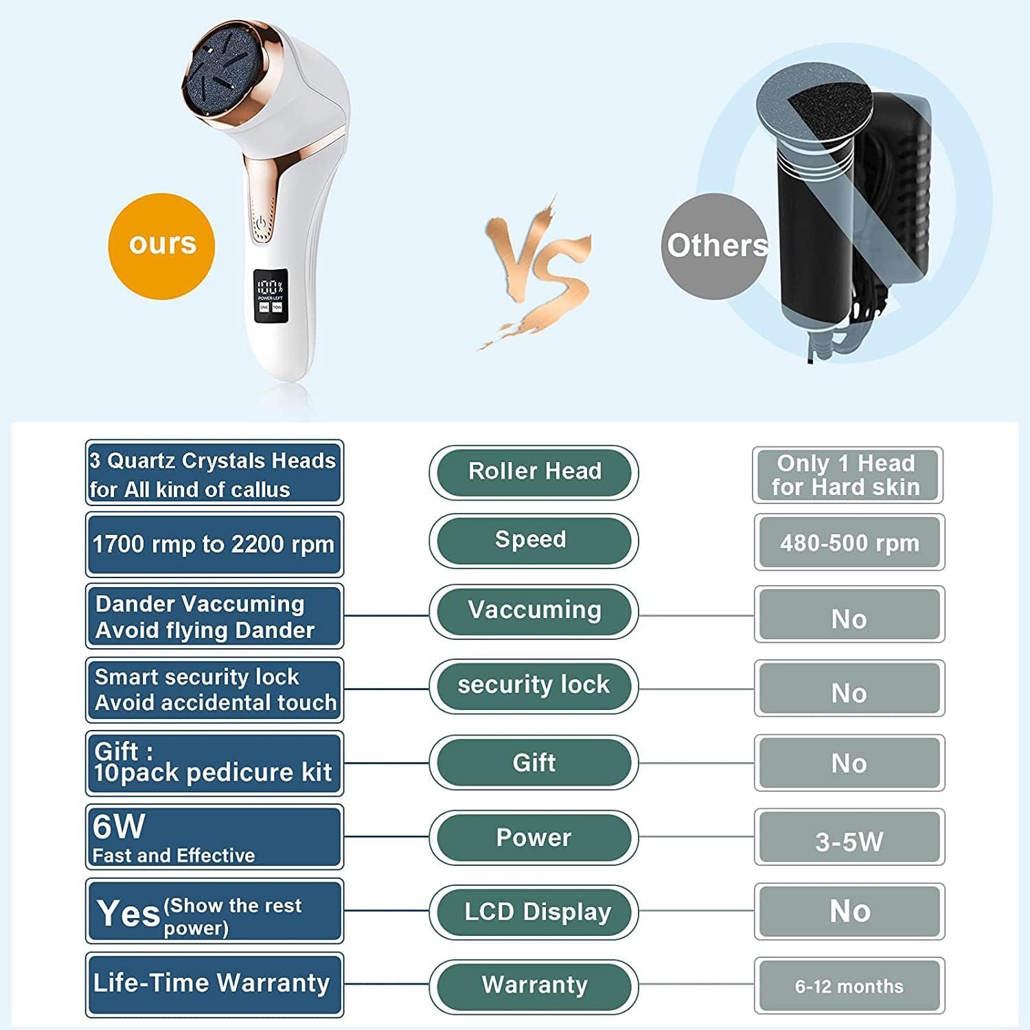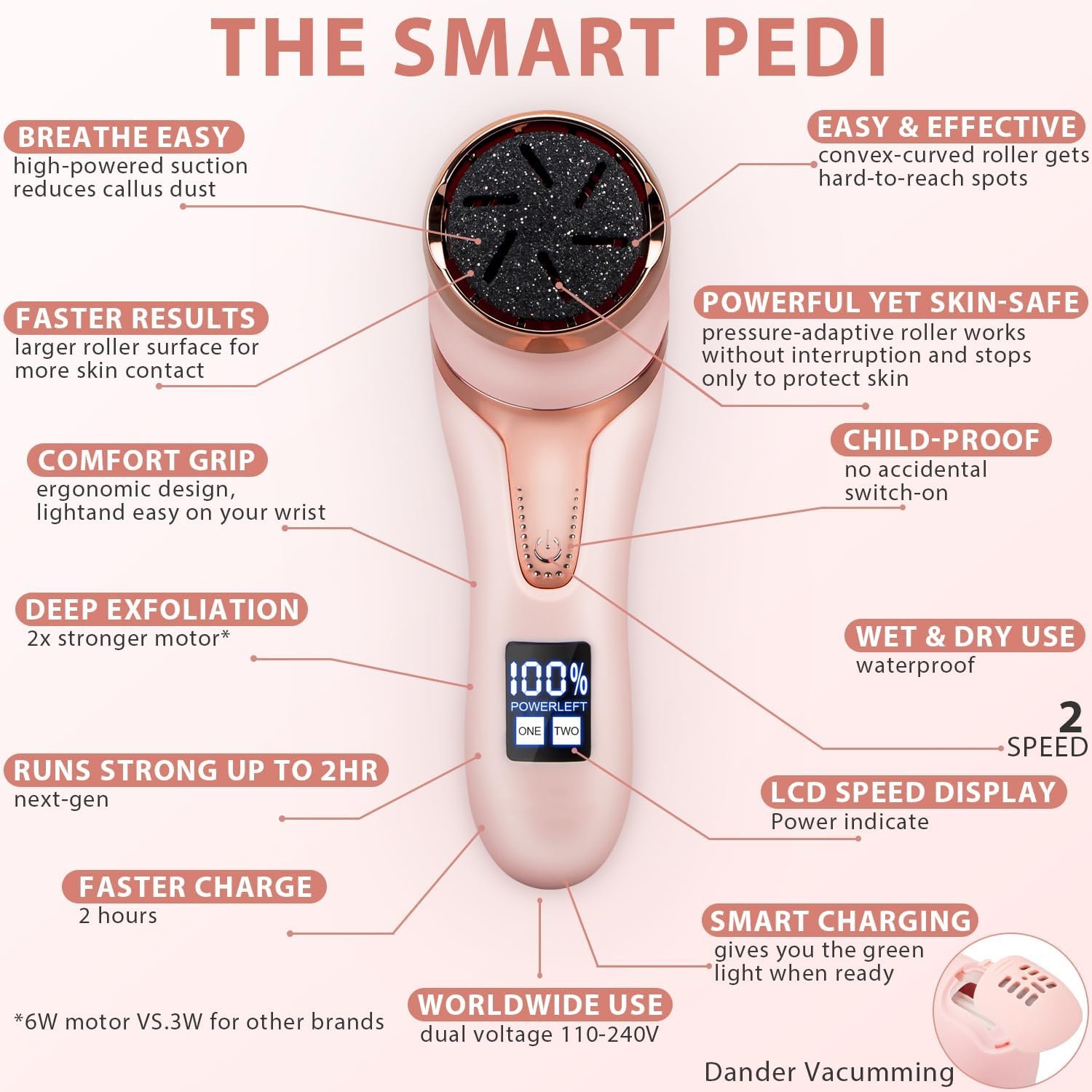 con bloqueo de seguridad inteligente, el removedor de callos de pie no funcionará si tu hijo o mascota hace clic en el botón de encendido por accidente. tienes que presionar el botón 2S para ejecutarlo.