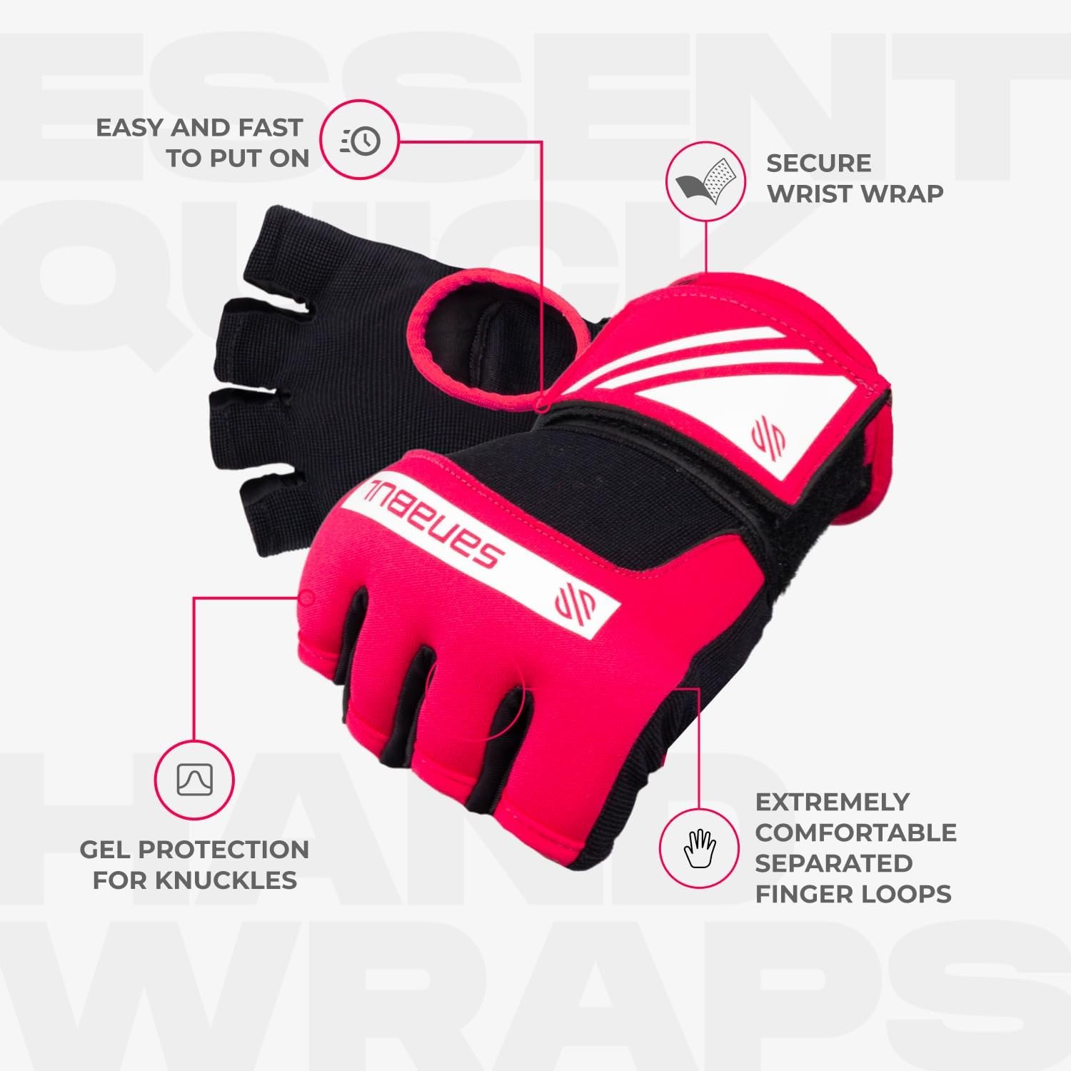 - Importante: Los guantes interiores deben usarse debajo de los guantes de boxeo. Las envolturas de gel para boxeo de Sanabul están meticulosamente diseñadas para ofrecer una protección superior de nudillos y muñecas para boxeo, Muay Thai y otros deportes de combate. Estas envolturas rápidas de boxeo están diseñadas tanto para hombres como para mujeres, asegurando un ajuste cómodo para todos, desde principiantes hasta luchadores experimentados.