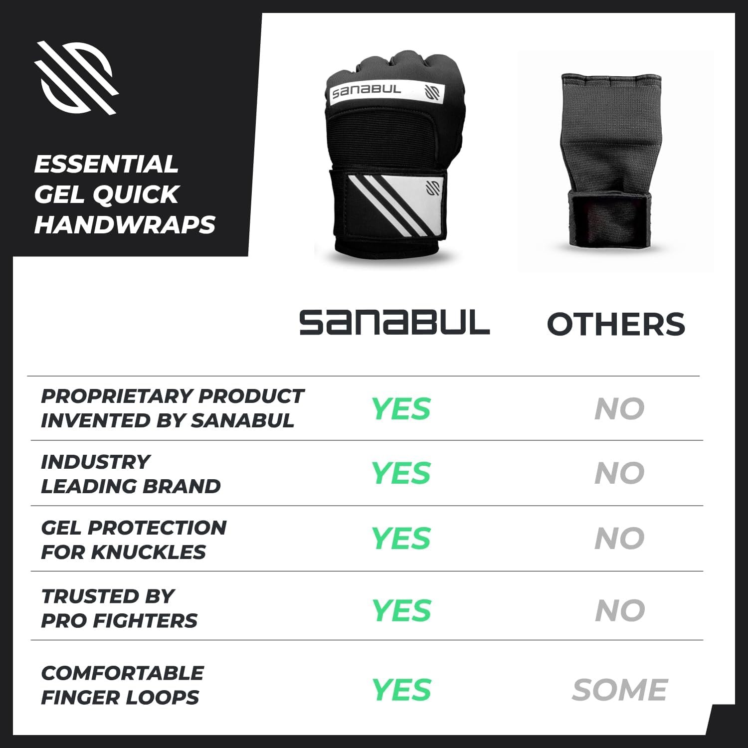 - Fiable: Sanabul se ha ganado una reputación de excelencia en el mundo de los deportes de combate. Nuestras envolturas de gel de boxeo no son una excepción. Con un enfoque en la calidad, durabilidad e innovación, nos aseguramos de que tus manos y muñecas reciban la mejor protección y apoyo durante tus sesiones de entrenamiento de boxeo y entrenamiento de combate. Elige Sanabul con confianza para tus necesidades de boxeo.