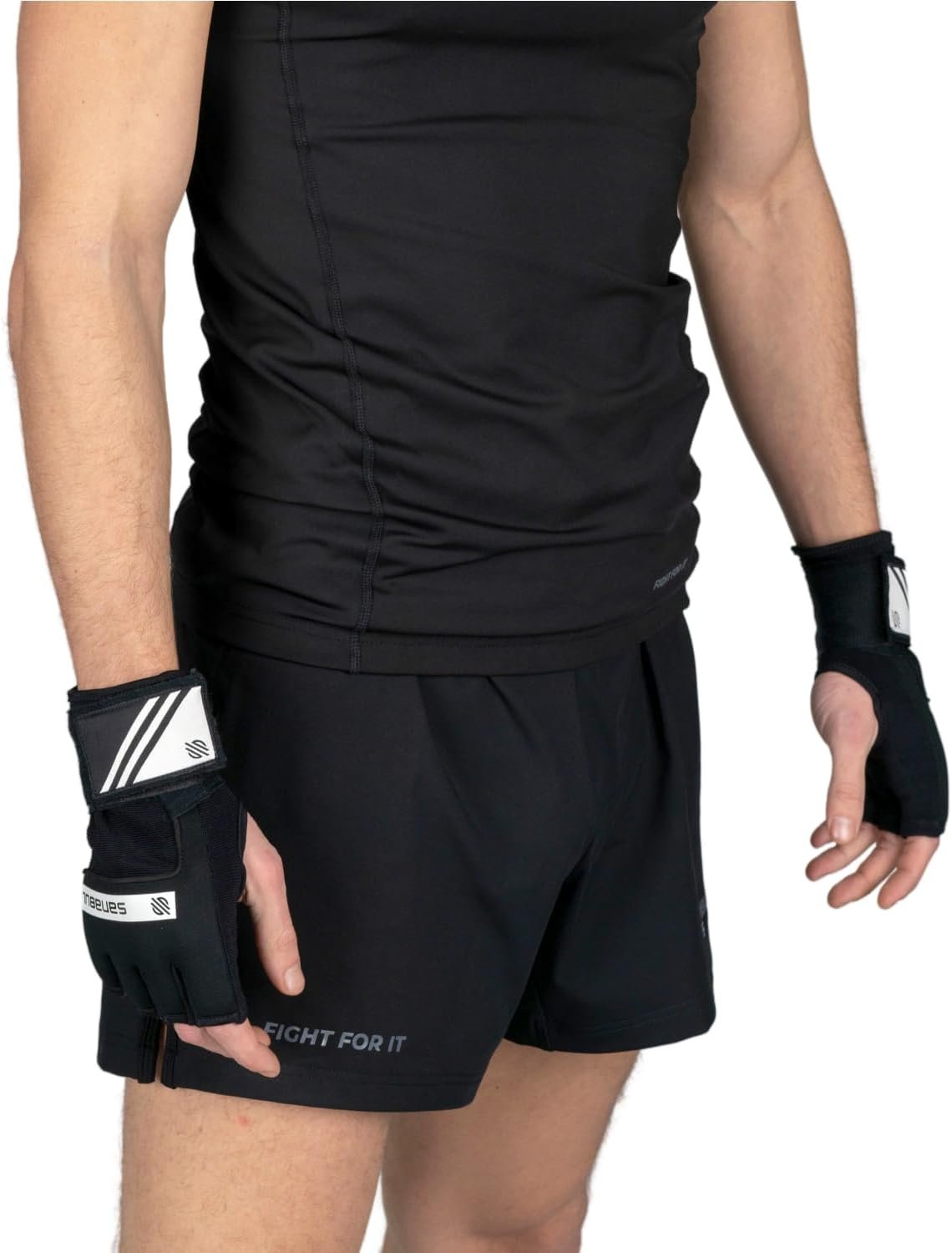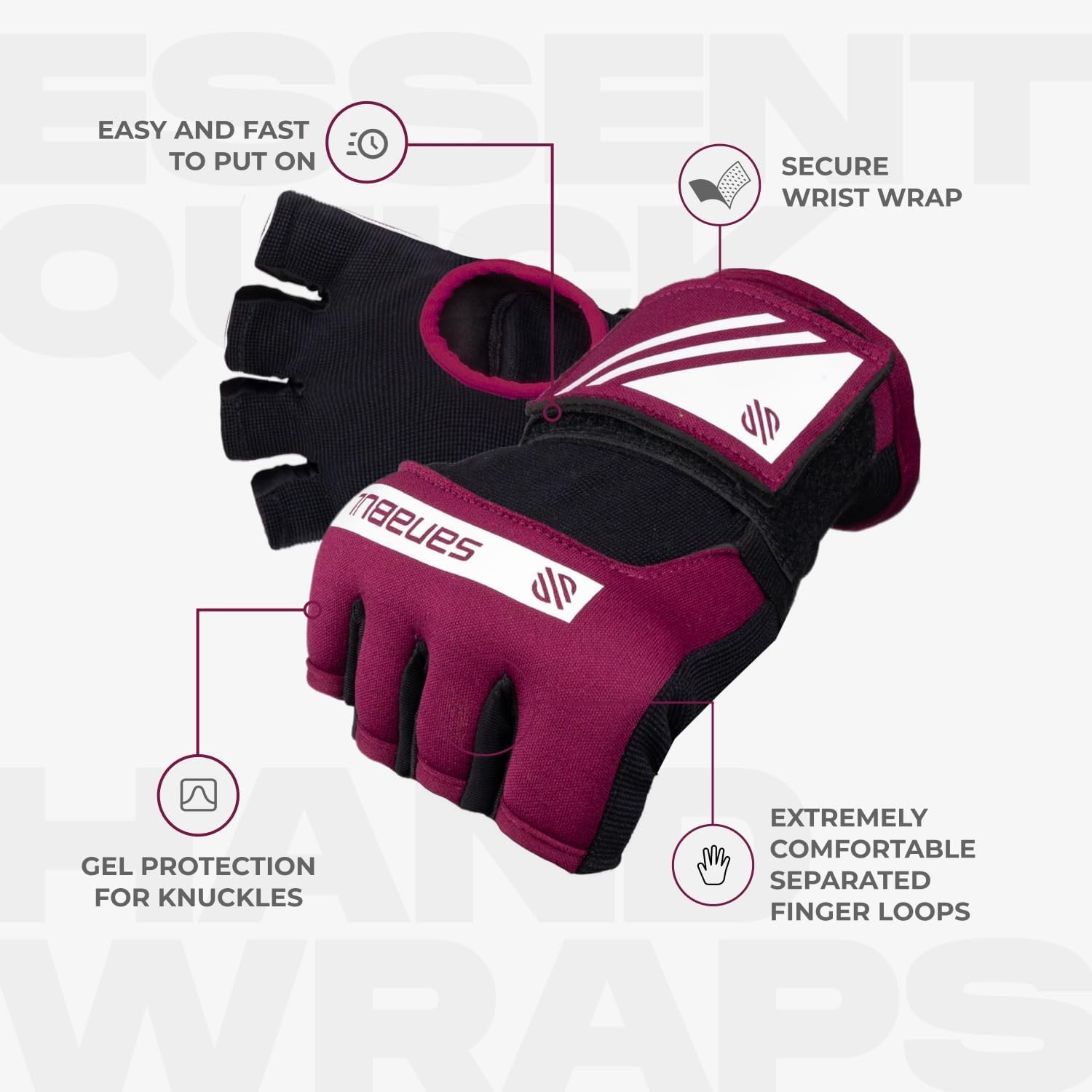 - Envolturas de boxeo para guantes con diseño innovador: otras vendas tienen un diseño incómodo de agujero para los dedos. Experimenta la comodidad de nuestras envolturas rápidas para guantes de boxeo. Simplemente colócalos, asegura tus guantes y estarás listo para entrenar o entrenar.