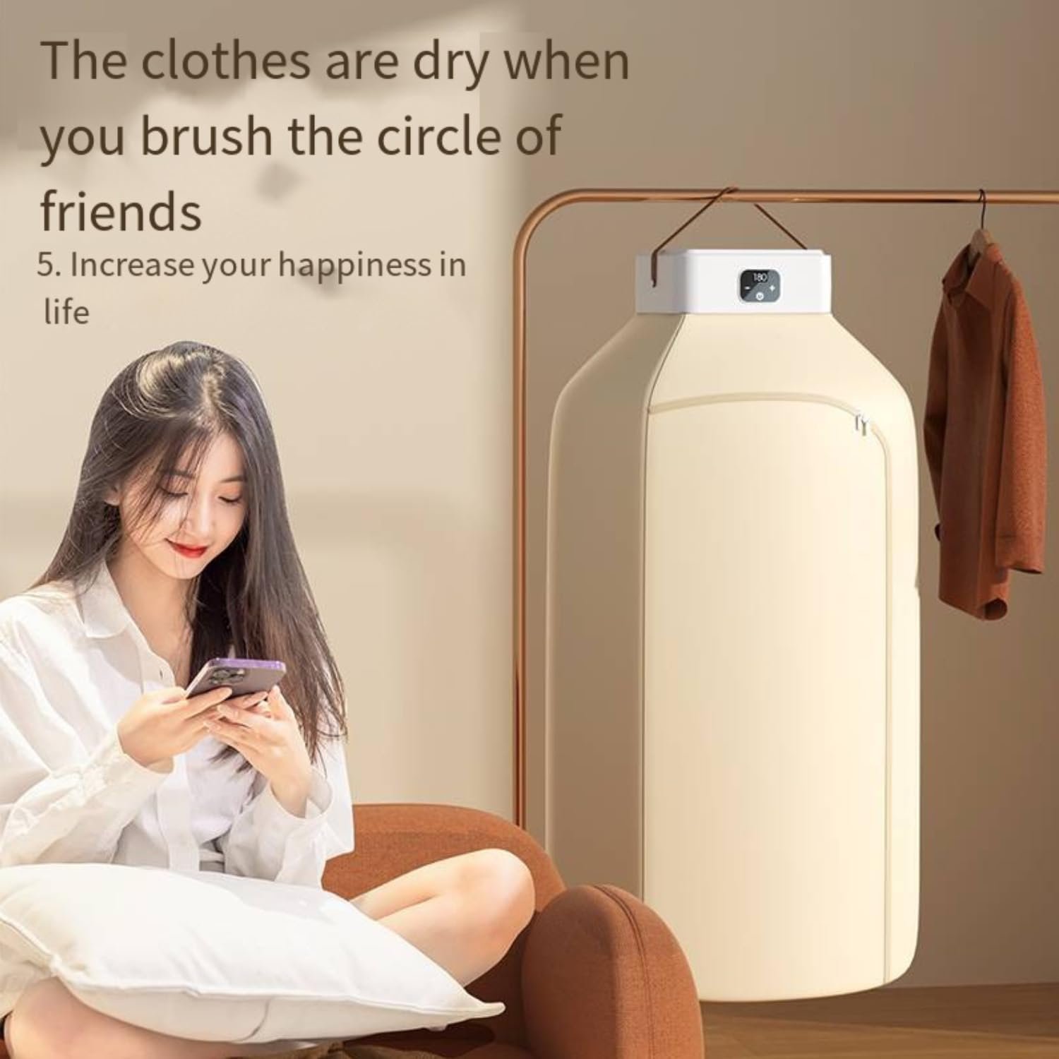 Esta secadora de ropa plegable inteligente cuenta con tecnología de vanguardia, con una gran capacidad que soporta hasta 44.1 lbs para secar todas las prendas familiares sin esfuerzo, no necesita instalación, simplemente cuelga y úsala. Equipado con flujo de calor circulante 3D y tecnología de iones negativos UV+ de alta potencia de 650 W para refrescar y proteger la salud de la ropa; su pantalla táctil visual garantiza una fácil operación, complementada con control remoto por infrarrojos para mayor comodidad. El gran panel de calefacción PTC y el turbo ventilador de seis aspas ofrecen un secado rápido; un chip de control de temperatura AI ofrece sincronización inteligente de 3 horas, secado suave y ajustes automáticos de ahorro de energía. Con reducción de ruido optimizada para un uso nocturno silencioso, se pliega de forma compacta a 9.8×7.9×3.9 in para almacenamiento portátil y viajes. La cubierta de tela Oxford de alta densidad y la protección contra sobrecalentamiento garantizan la seguridad, por lo que es perfecta para el hogar, viajes y aventuras al aire libre.