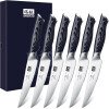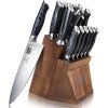 • Juego de cuchillos para todas las necesidades: el juego de cuchillos SHAN ZU incluye cuchillo de chef, cuchillo Santoku, cuchillo de pan, cuchillo de cortar, cuchillo de filete, cuchillo utilitario, cuchillo de pelar, 6 cuchillos de carne, tijeras, varilla de afilar y bloque de madera extraíble. Exactamente el juego de cuchillos para todas tus necesidades