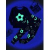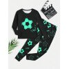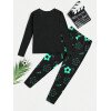 2 piezas Conjunto de pijama de cuello redondo con estampado de fútbol fluorescente de ajuste ceñido para niño preadolescente – Parte superior de manga larga y pantalones