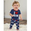 Conjunto de ropa interior para el hogar de niño bebé con ajuste ceñido, camiseta de mangas cortas de cuello redondo y pantalones, estilo casual, para primavera/verano