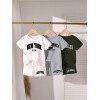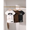 SHEIN Explorewe Conjunto casual de 6 piezas para niños pequeños: 1 camiseta de manga corta con cuello redondo y estampado de letras y 1 pantalón corto en blanco, 1 en marrón, 1 en negro