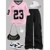 EZwear Conjunto de 2 piezas para mujer con camiseta de manga corta con estampado de letra y pantalón cargo de verano