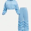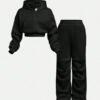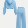 Girlism Conjunto de sudadera con capucha y pantalón de chándal de punto para niña preadolescente, ropa de estar en casa informal