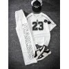 Set de 2 piezas compuesto por camiseta de cuello redondo casual con estampado de letra y pantalones deportivos holgados para niños adolescentes