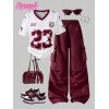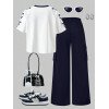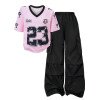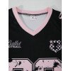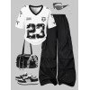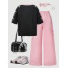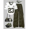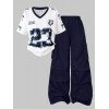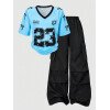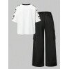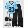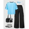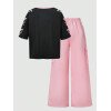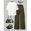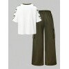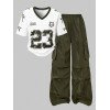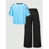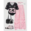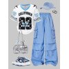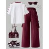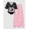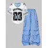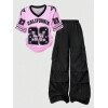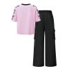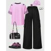 SHEIN Set de 2 piezas de niña preadolescente con camiseta de manga raglán con gráfico al estilo estadounidense y pantalones cargo con bolsillo con aplicación