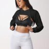 With My Calm Capucha de hombros caídos con cordón con abertura súper crop deportivo sin top de tirantes
