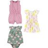 Simple Joys by Carter’s Paquete de 3 mamelucos, traje de sol y vestido para bebé niña