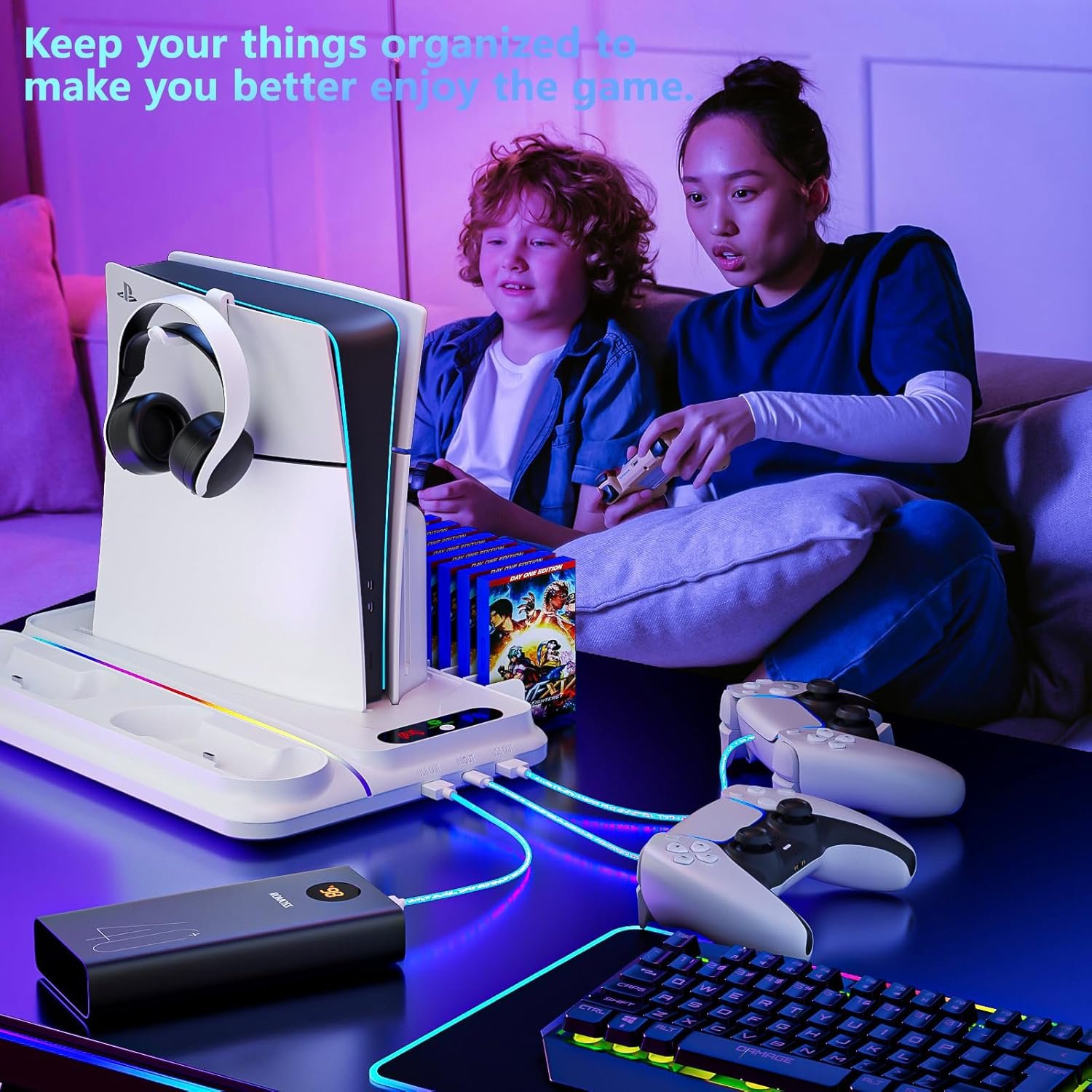 - Carga completa rápida de 2.5 horas para controladores PS5: el soporte de silm PS5 con estación de carga dual ps5 puede soportar cargar completamente el controlador al mismo tiempo en 2.5 horas, nuestro soporte delgado para ps5 es más rápido que otros para permitirte pasar más tiempo jugando