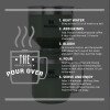 CALIENTE AGUA Llevar al menos 20 oz de agua a ebullición. AGREGAR MOLIDOS Agregue 3 cucharadas de café molido grueso. 4 cucharadas si te gusta el barro. 5 cucharadas si eres desvergonzado. Coloca el vertido encima de tu taza Legendary Camp de 12 onzas. BLOOM En un movimiento circular, moje los terrenos con media taza de agua CALIENTE y observe cómo suben. Igual que la magia. Verter Comenzando en el centro y moviéndose hacia afuera, vierta el agua CALIENTE restante en ese movimiento circular. Todo está en la muñeca. Deje que el agua se drene a través de las moliendas, revolviendo según sea necesario. Sirve y disfruta después de 2-3 minutos, también conocido como menos tiempo del que se tarda en leer estas instrucciones, retira el vertido de la taza y disfruta
