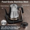 - Acero inoxidable de grado alimenticio: este hervidor eléctrico de cuello de cisne no contiene BPA, el interior de la tetera de agua caliente está hecho de acero inoxidable apto para uso alimentario sin ningún plástico, te ofrece una bebida más saludable y una mayor calidad de vida.