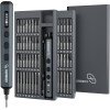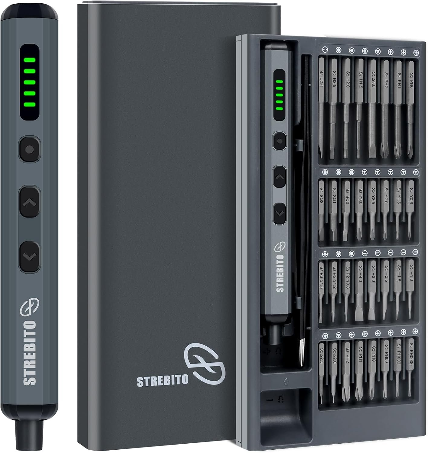 STREBITO Mini juego de destornilladores eléctricos, 70 en 1 destornillador eléctrico pequeño inalámbrico – 64 puntas de preicisión S2, 5 ajustes de par, 4 luces LED, kit de herramientas de reparación