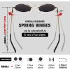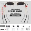 Bisagras de resorte de diseño especial que se pueden ajustar automáticamente para adaptarse a la mayoría de las formas de la cara. Las bisagras de resorte flexibles permiten que los brazos se extiendan más allá del tradicional rango de movimiento de 30 grados.