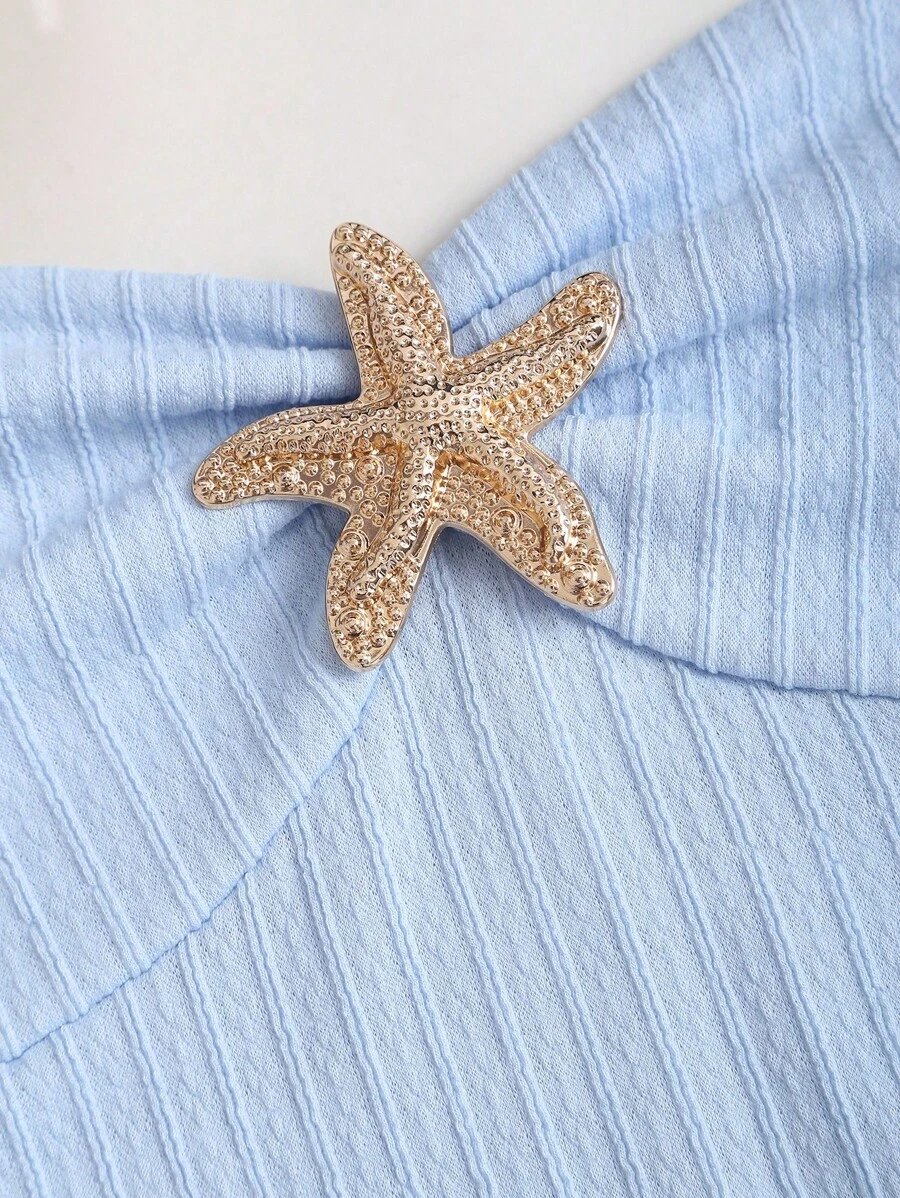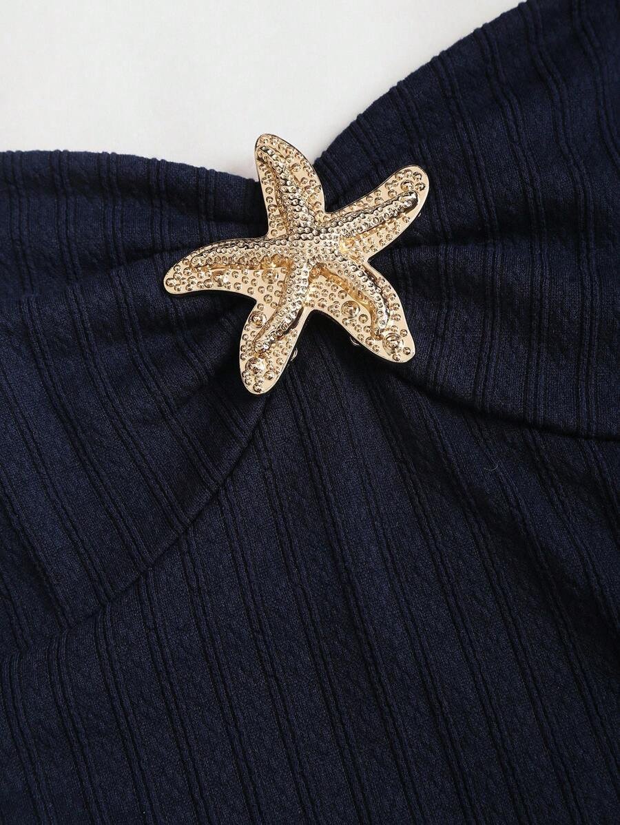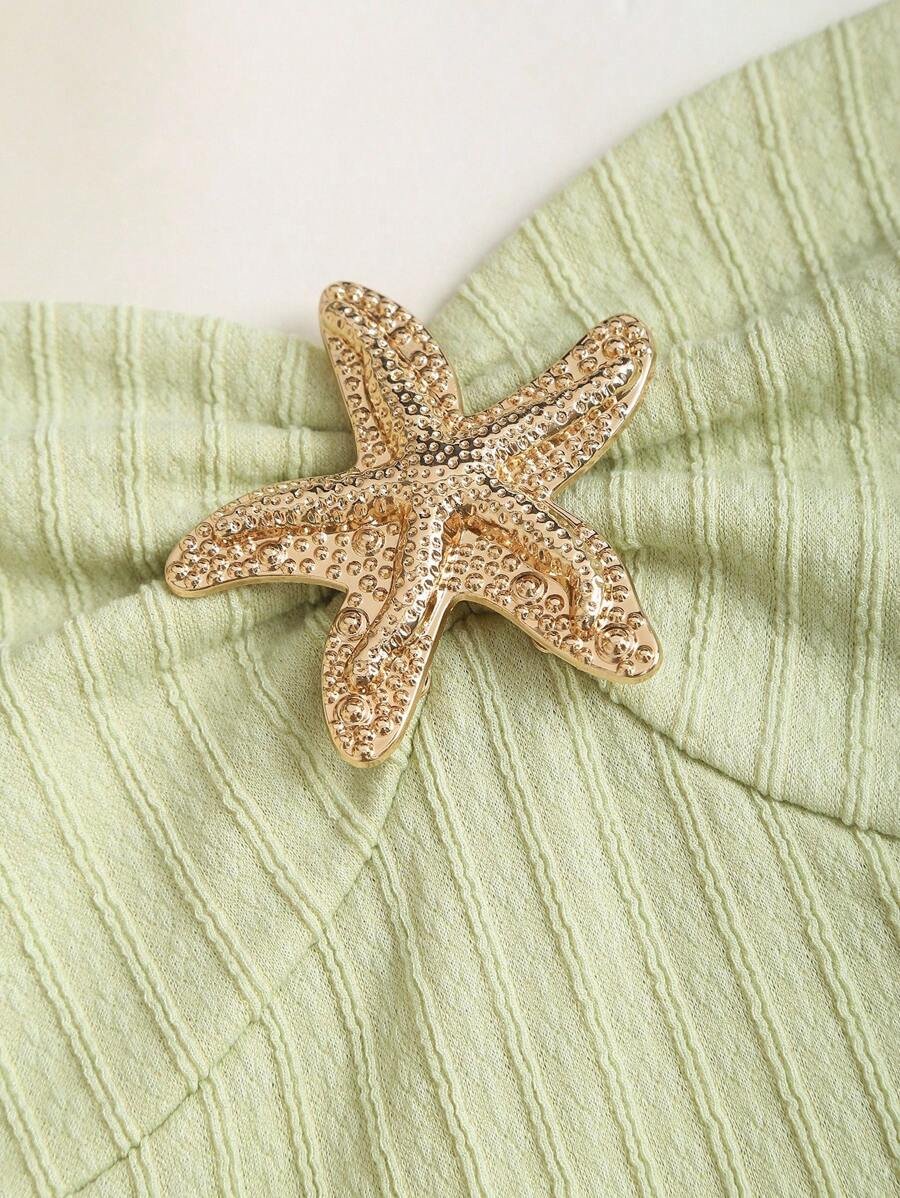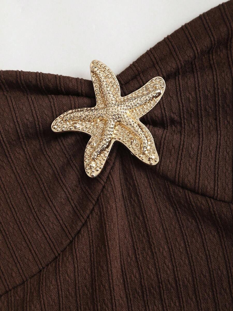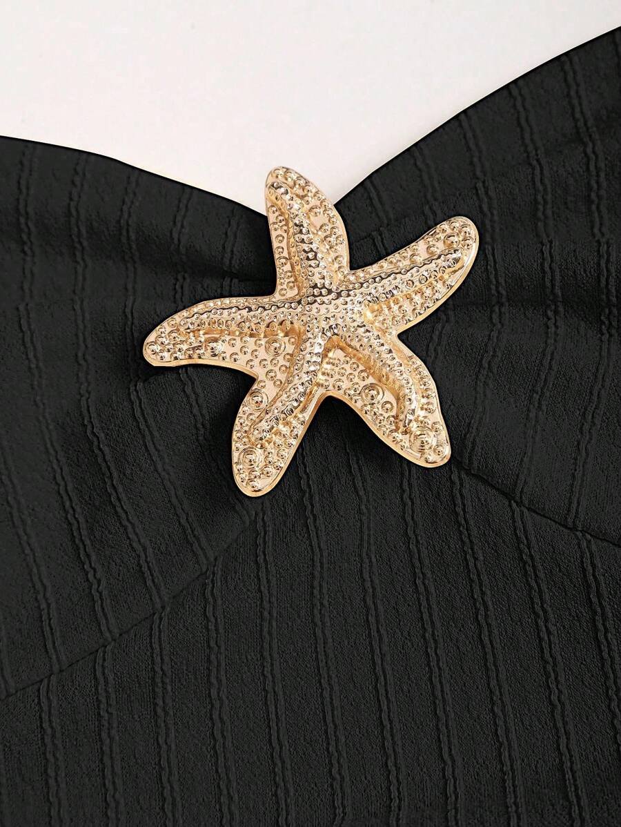 Sweetra Nuevo vestido mini elegante para mujer apropiado para la playa y vacaciones de verano, con tela con textura, cuello halter, lazo delantero, busto fruncido, decoración metálica, falda con volantes en capas y dobladillo juguetón