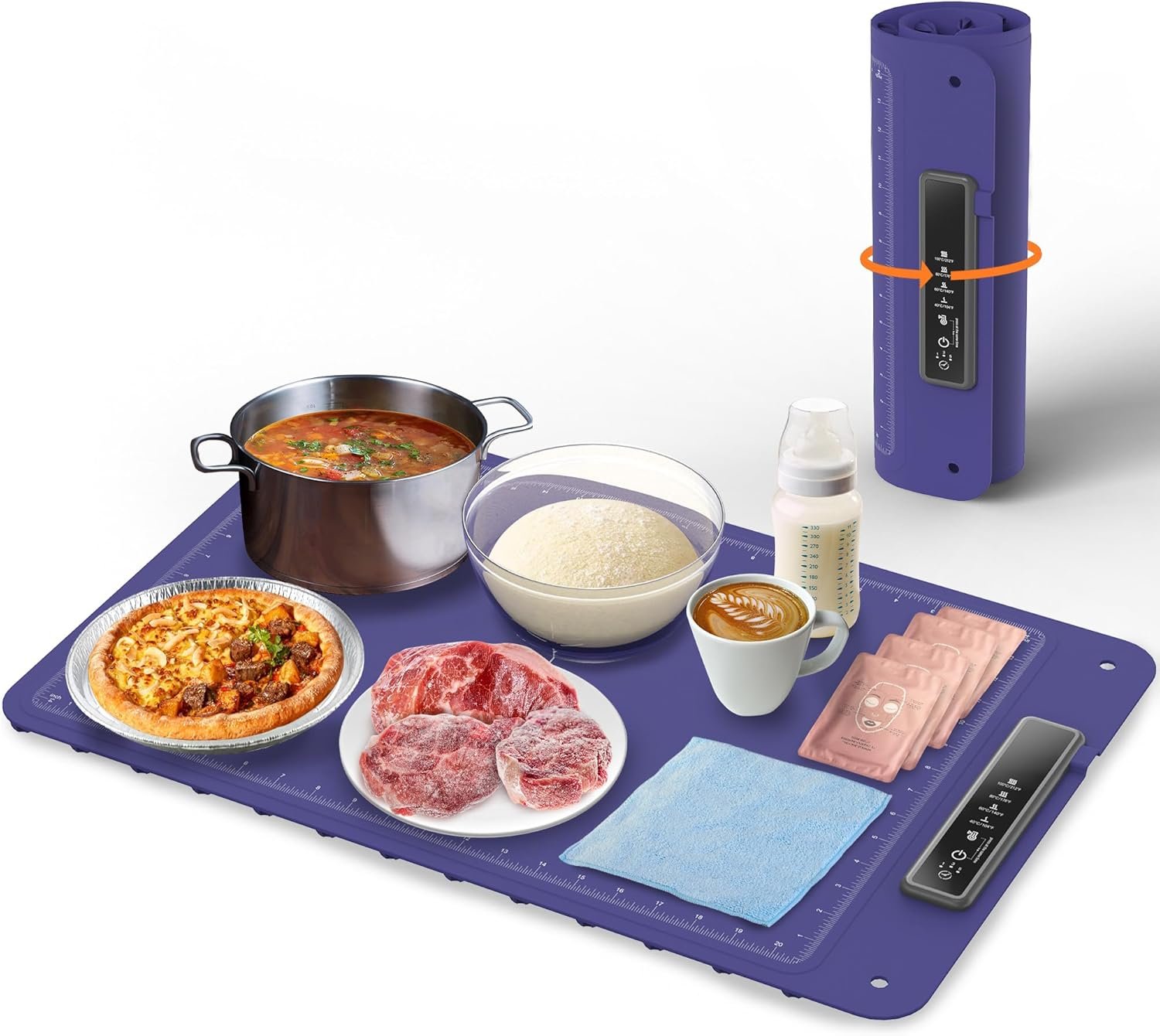 - Control de temperatura y escala: este calentador de alimentos tiene 4 niveles de temperatura precisos de 104 °F a 212 °F. 104° para la fermentación de la masa o calentar las mascarillas; 140° para descongelar o calentar la leche; 176° para calentar té o café; 212° para calentar alimentos. Con una longitud de 24.12 pulgadas y un ancho de 15.75 pulgadas, este calentador de pies puede acomodar fácilmente varios platos. Además, esta bandeja eléctrica para calentar alimentos está equipada con una báscula, hace que la disposición de la vajilla sea más flexible.