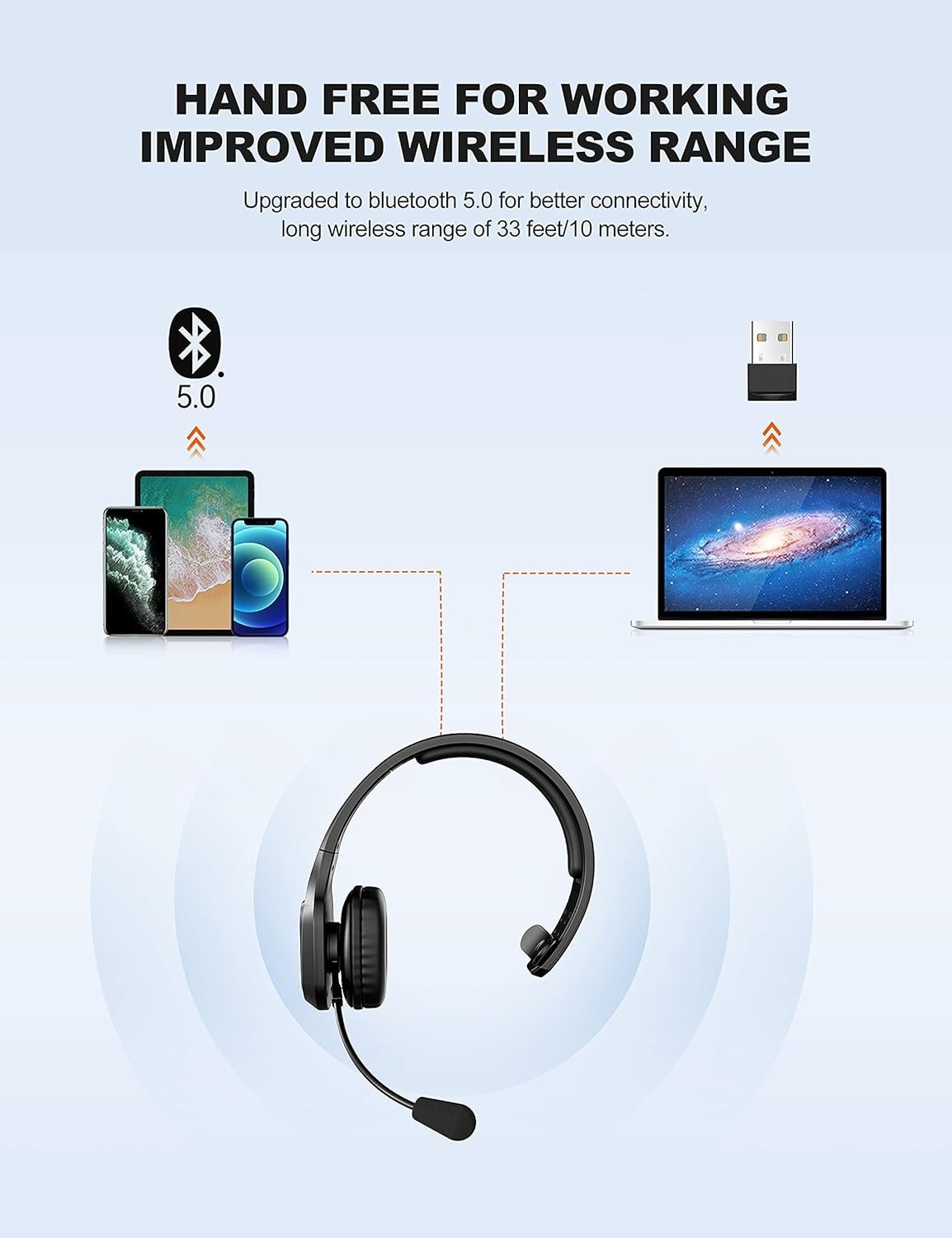 TECKNET – Auriculares inalámbricos con micrófono para PC y teléfono celular