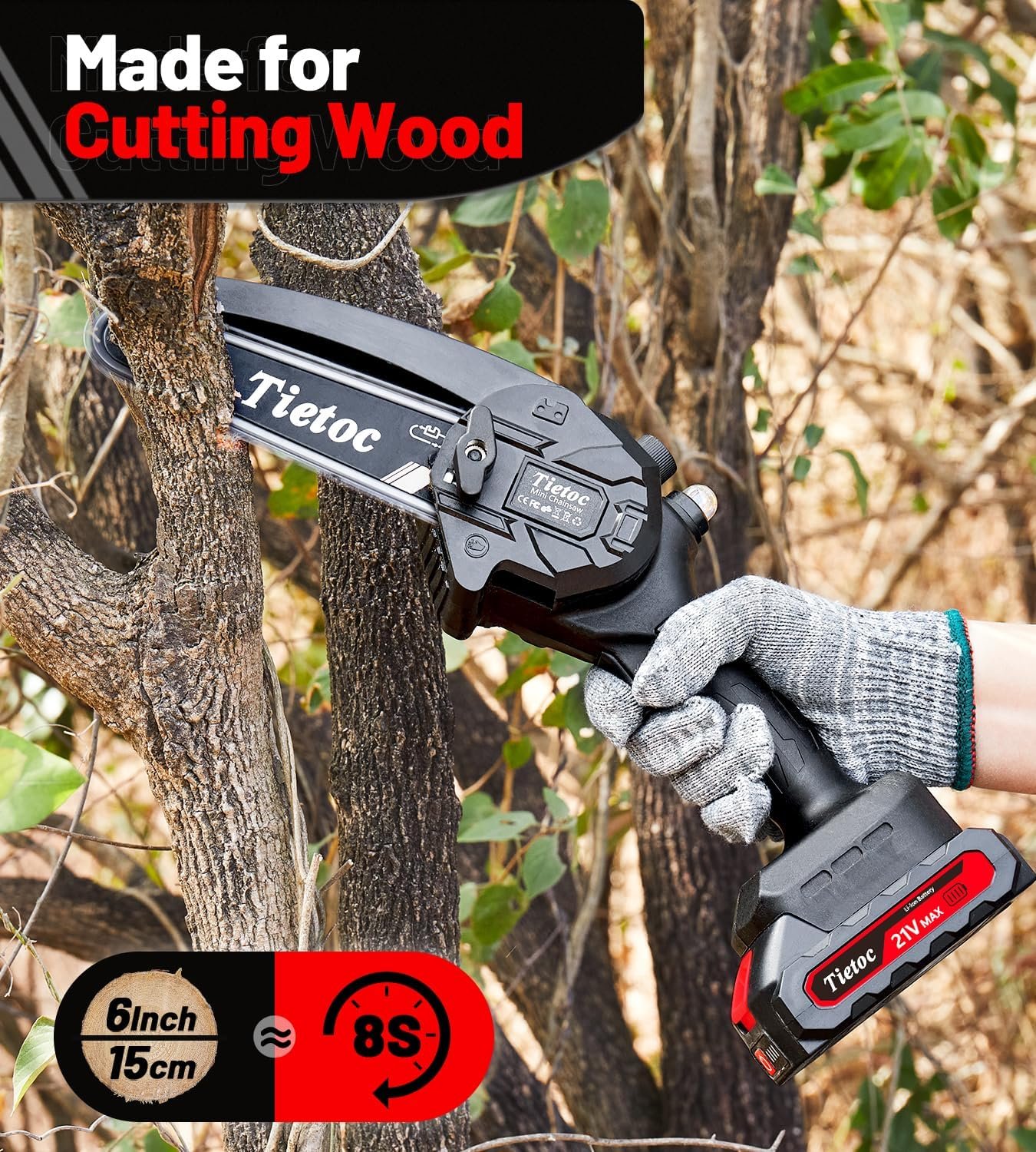 Tietoc Mini motosierra eléctrica portátil de 6 pulgadas, sin cable, pequeña sierra de mano alimentada por batería, súper sierras para rellenar calcetines para adultos y hombres, regalos de Navidad para hombres, papá, marido, padres, mujeres, mamá