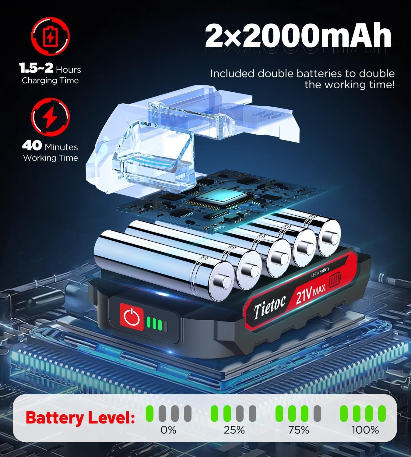 • BATERÍA DE GRAN CAPACIDAD: Equipado con batería extraíble y recargable de 2000 mAh, la mini motosierra inalámbrica terminará todo su corte, incluso en el campo! Es adecuado para cortar madera, poda de jardín, poda de ramitas, poda de arbustos; ampliamente utilizado en jardines, granjas, parques, bosques, pastos, huertos, invernaderos. Además, la protección contra la sobrecarga y la temperatura proporcionan una vida útil mucho más larga.
