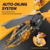 • El engrasador automático es un cambiador de juego: la sierra tiene un depósito para aceite de cadena que es genial. (¡Algunas motosierras pequeñas no tienen eso!) El engrasado “automático” no se engrasa como una sierra más grande, sino una bombilla que empujas para alimentar aceite a la barra y la cadena. Todas estas mini hojas de sierra requieren lubricación para funcionar al máximo, por lo que debe presionar el botón de lubricación con bastante frecuencia mientras corta. (Se recomienda aceite universal para cadena de sierra para un corte rápido y eficiente)