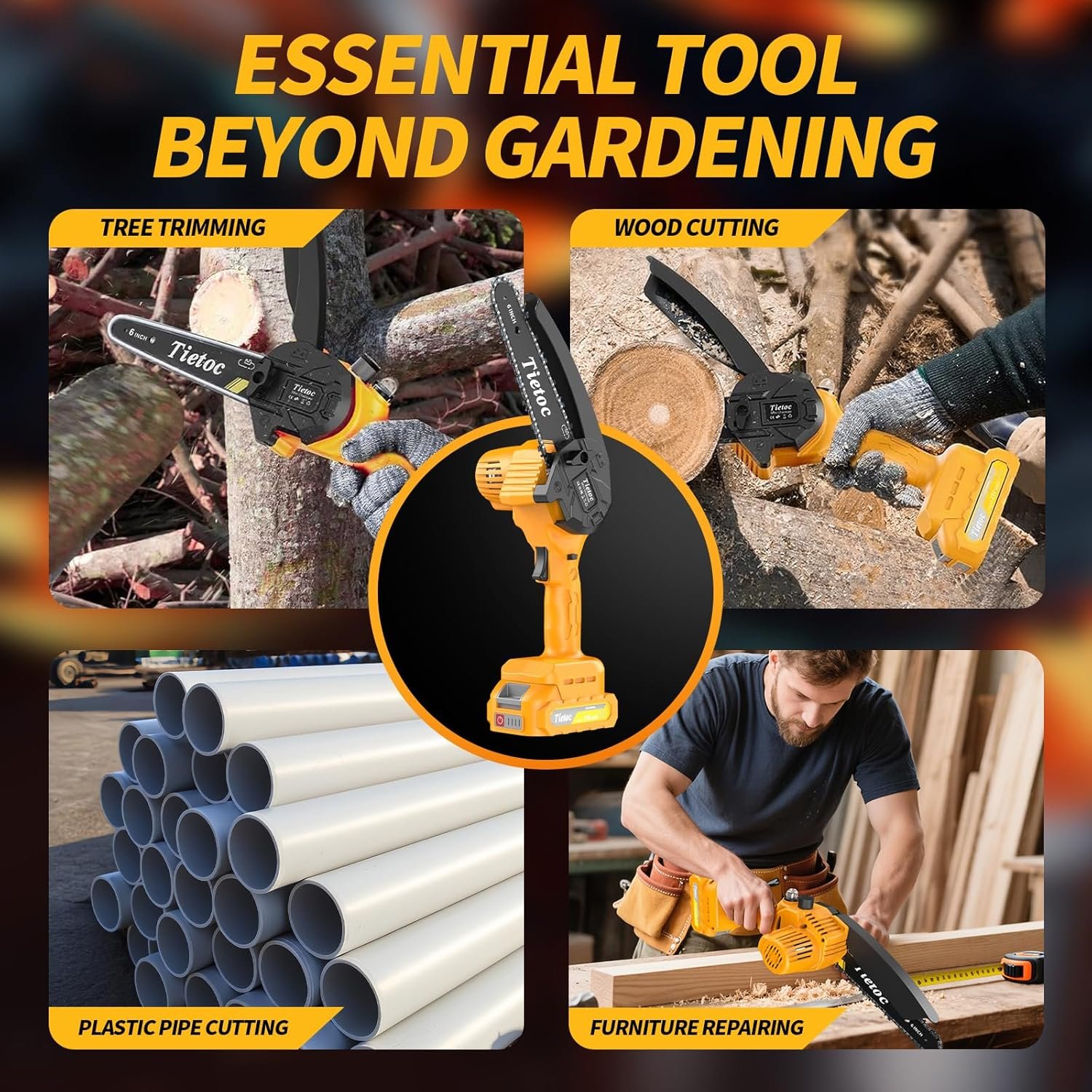 • Garantía de 365 días: la mini motosierra tietoc adopta materiales ignífugos y de protección del medio ambiente, y tiene certificación profesional [FCC]. (¡Algunas motosierras pueden tener solo una garantía de 90 días!) Estamos orgullosos de nuestras mini motosierras, por lo que ofreceremos una garantía de 365 días. Cualquier problema, por favor contáctenos, haremos las cosas bien dentro de las 24 horas.