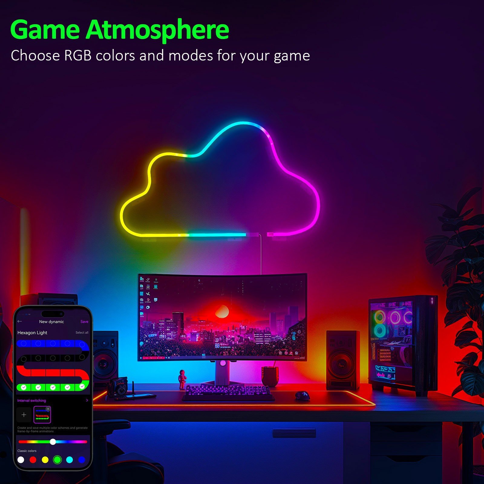 La tira de neón RGBIC puede emitir varios colores al mismo tiempo